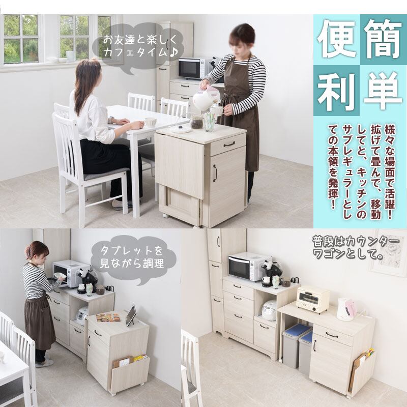 その日の暮らしに合わせて形を変えられるバタフライ式キッチンワゴンです。