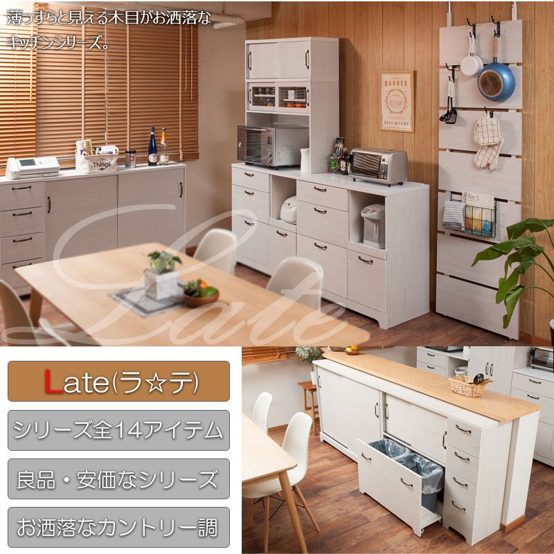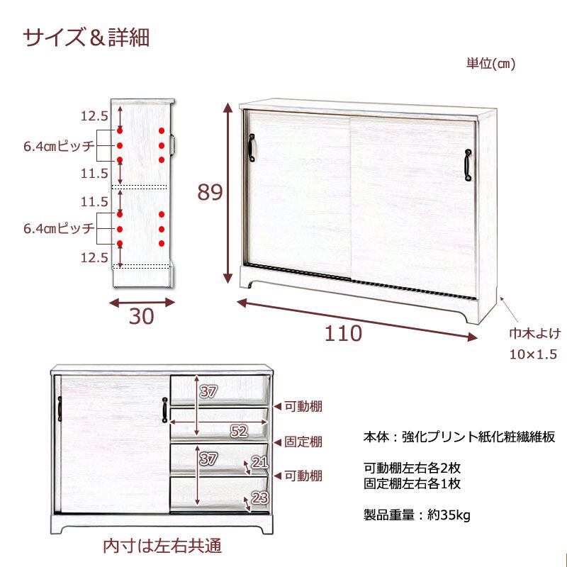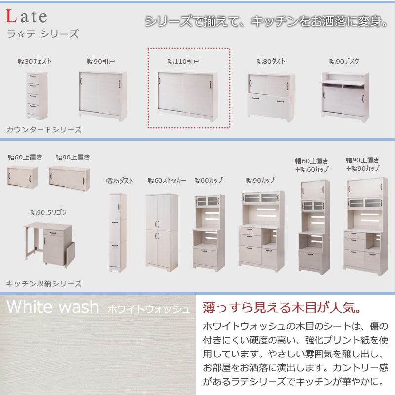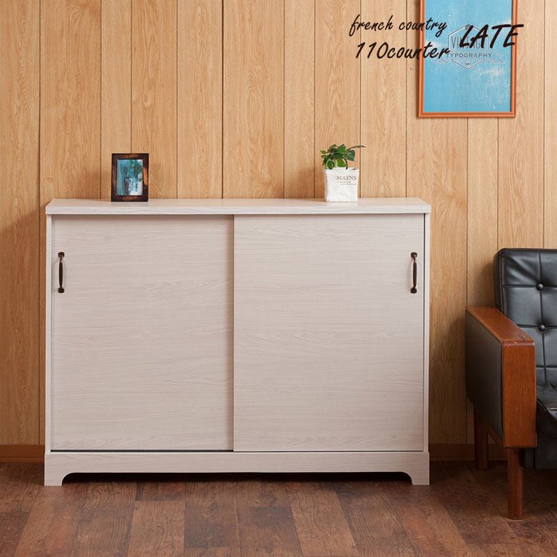 キャビネット カウンター下 引き戸収納 食器棚 本棚 リビング ダイニング 収納 ホワイト 木目色 薄型 省スペース キズつきにくい 幅110 LATTE