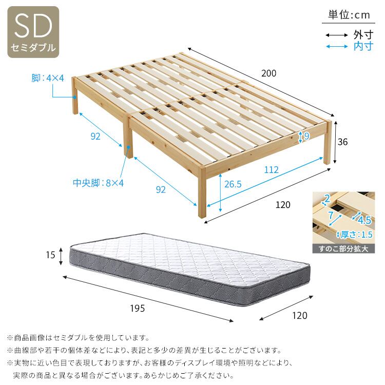 ベッドSD:(約)幅120×奥行200×高さ36cm