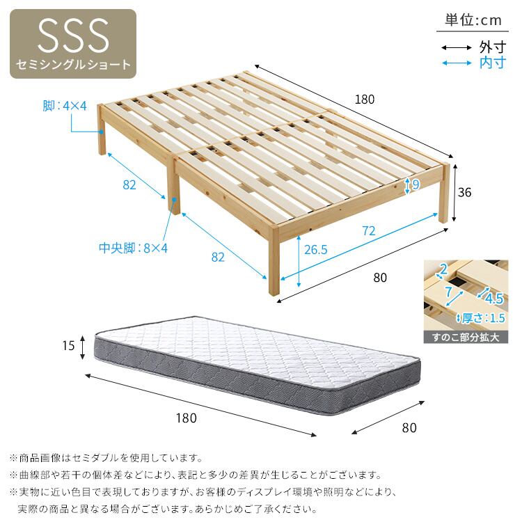 ベッドSSS:(約)幅80×奥行180×高さ36cm