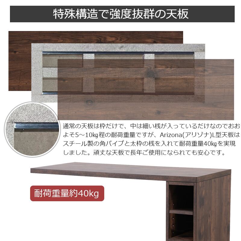 耐荷重量40kgを実現した丈夫なL型天板は長年ご使用になられても安心です。