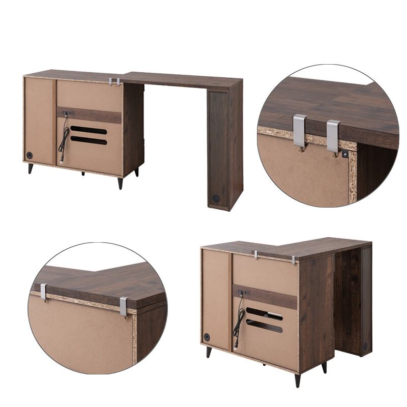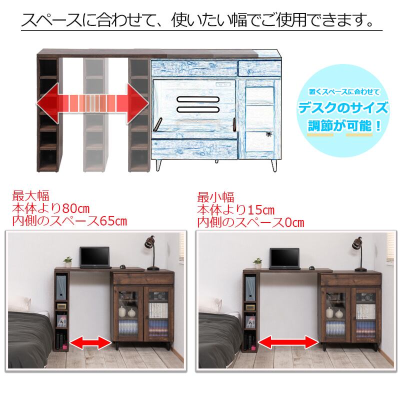 拡張テーブル 幅90 ブラウン 西海岸 パソコンデスク 木製 ヴィンテージ ビンテージ 一 可動式 伸縮 L字 収納付き 可動棚 ARZN