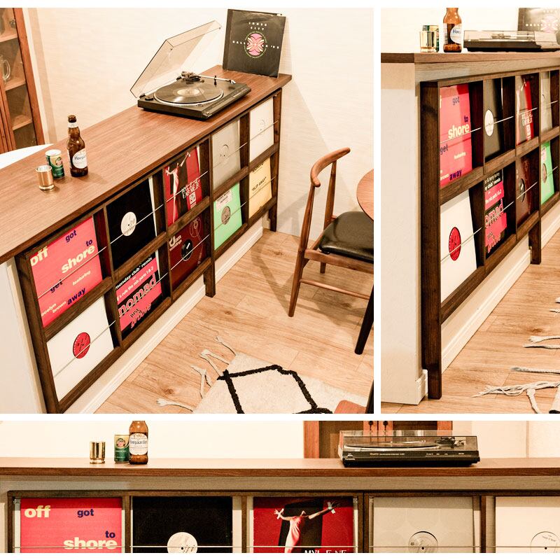 壁を使ってレコードを収納。