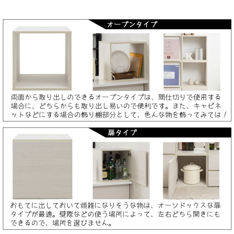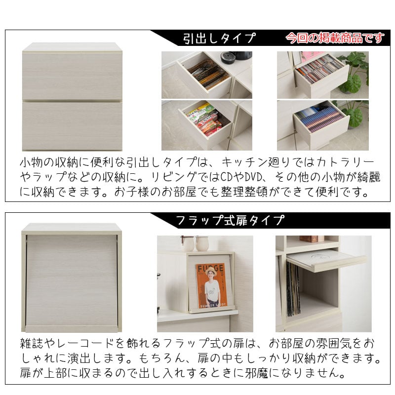 同シリーズのオープン・扉付き・引出し・フラップ扉と組み合わせて、