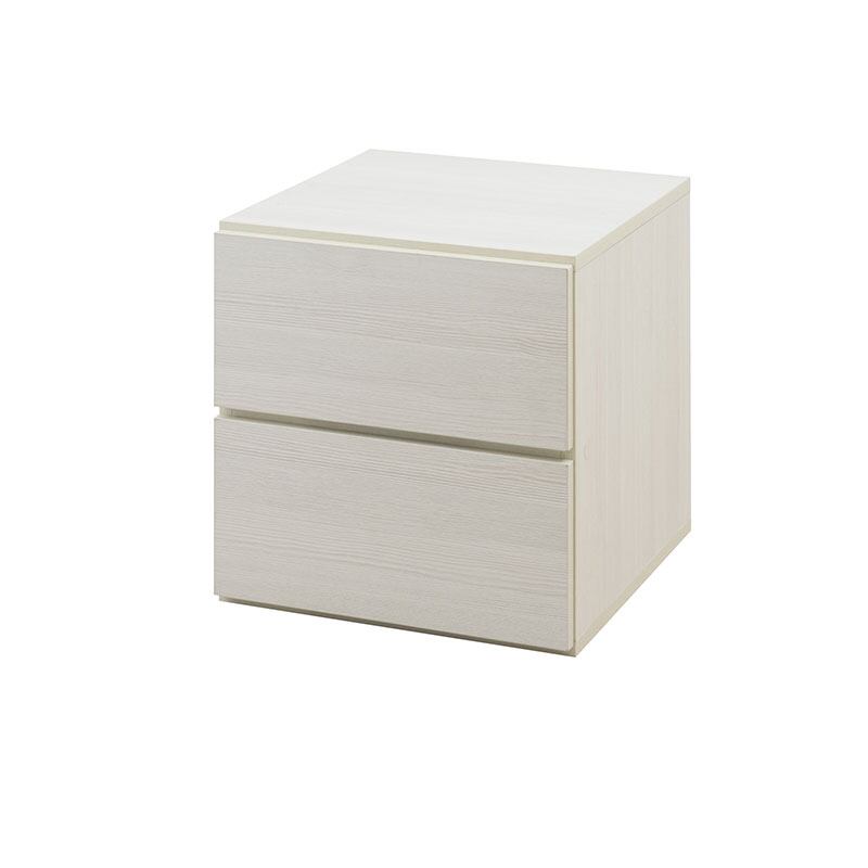 ホワイトカラーに流線を描く上品な木目が入った使い勝手の良い立方体のキューブボックス収納。