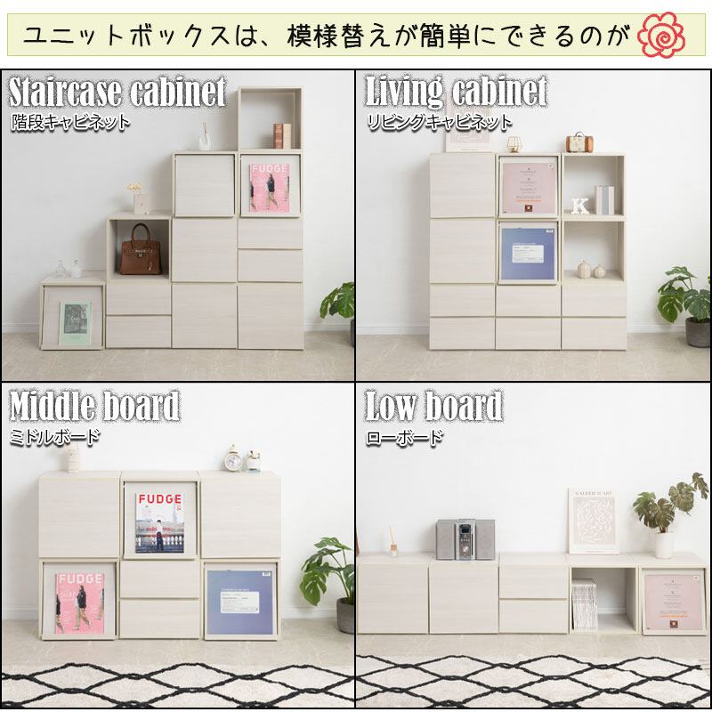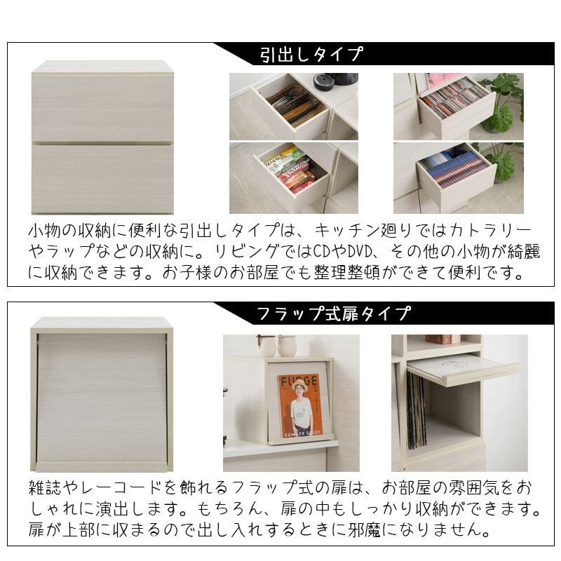 同シリーズのオープン・扉付き・引出し・フラップ扉と組み合わせて、