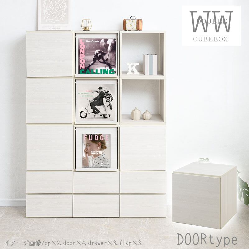 キューブボックス収納 扉付収納 1個 ホワイト木目 カラーボックス 組み合わせ自由 目隠し収納 カラーボックス 壁面収納 生活感隠し WWB