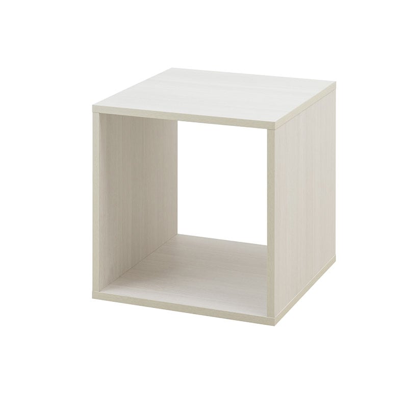 ホワイトカラーに流線を描く上品な木目が入った使い勝手の良い立方体のキューブボックス収納。