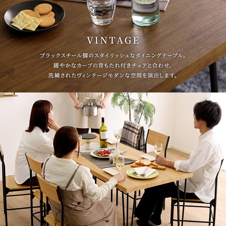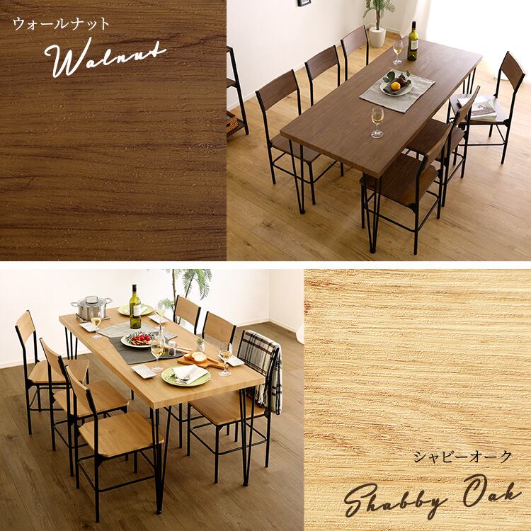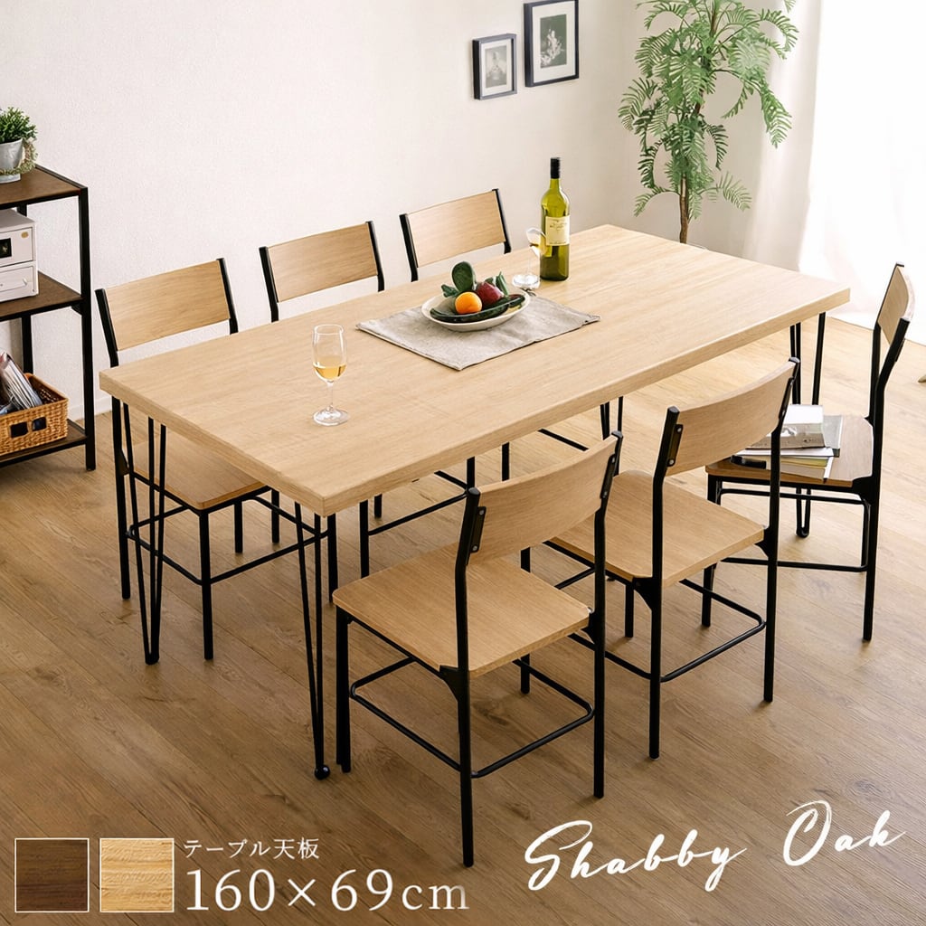 ダイニング7点セット 6人掛け 幅160cm 天然木風 モダン ヴィンテージ調 北欧 テーブル+チェア6脚 ウォールナット シャビーオーク スチール脚 食卓セット