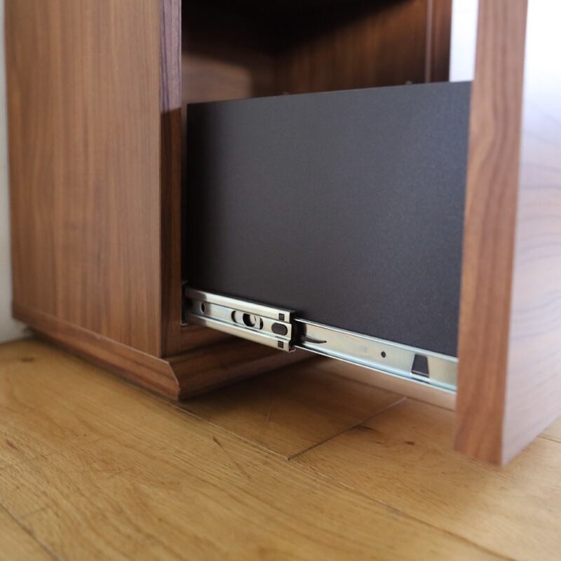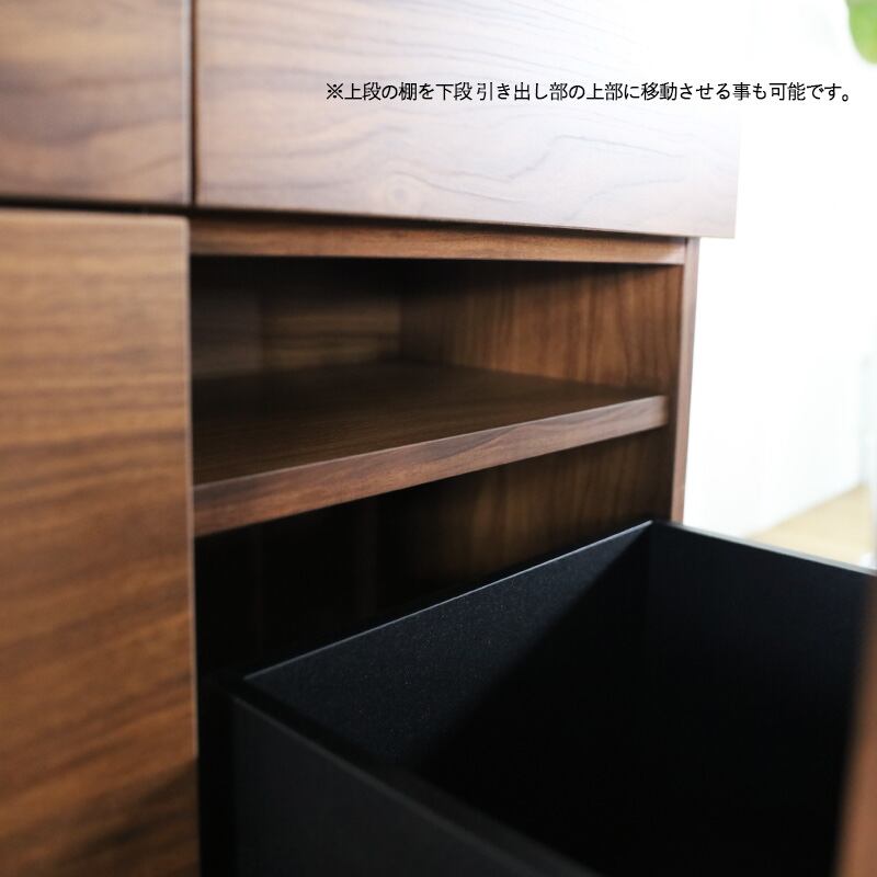 上段はプッシュラッチ式の扉収納、下段はフルオープン可能な深引き引き出し