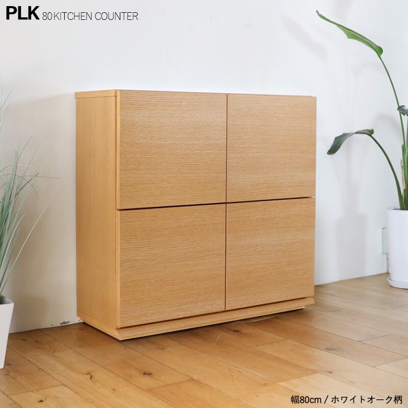 キッチンカウンター 80cm ホワイトオーク木目柄 国産 日本製 扉 引出し収納 北欧 スリム キッチン カウンター レンジ台 完成品 背面化粧 目隠しPLK