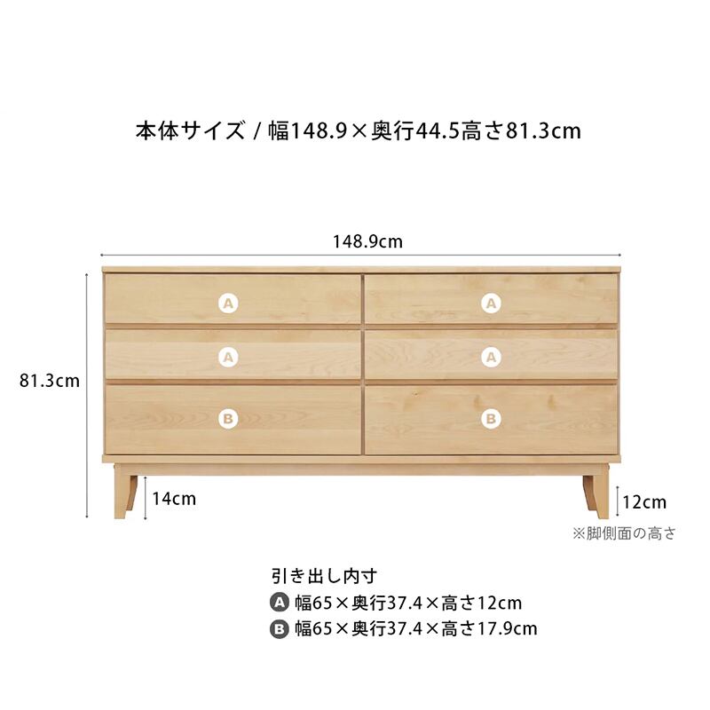 チェスト 150cm 3段 国産 リビングボード バーチ材 無垢材 日本製 自然塗装 フルオープン 引き出し収納 木製 北欧 ナチュラル サイドボード 完成品 OKLAHM