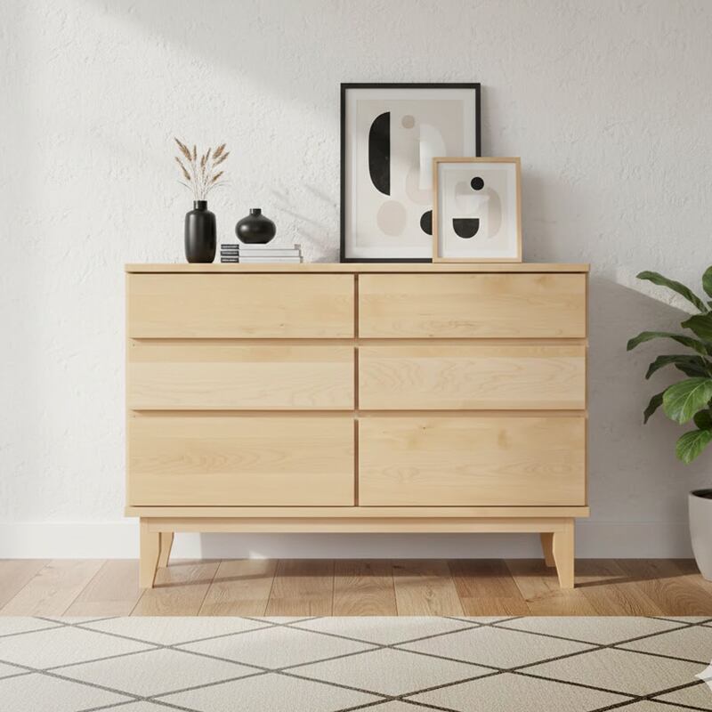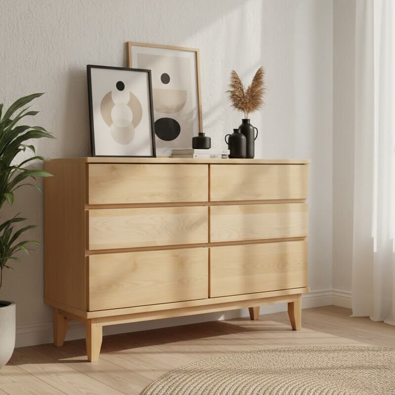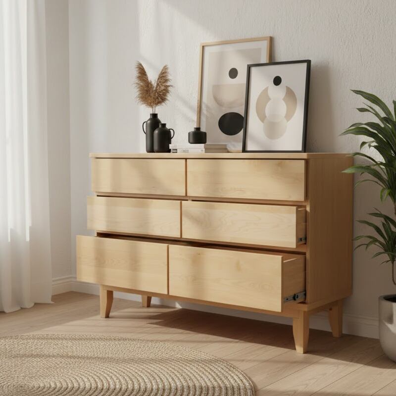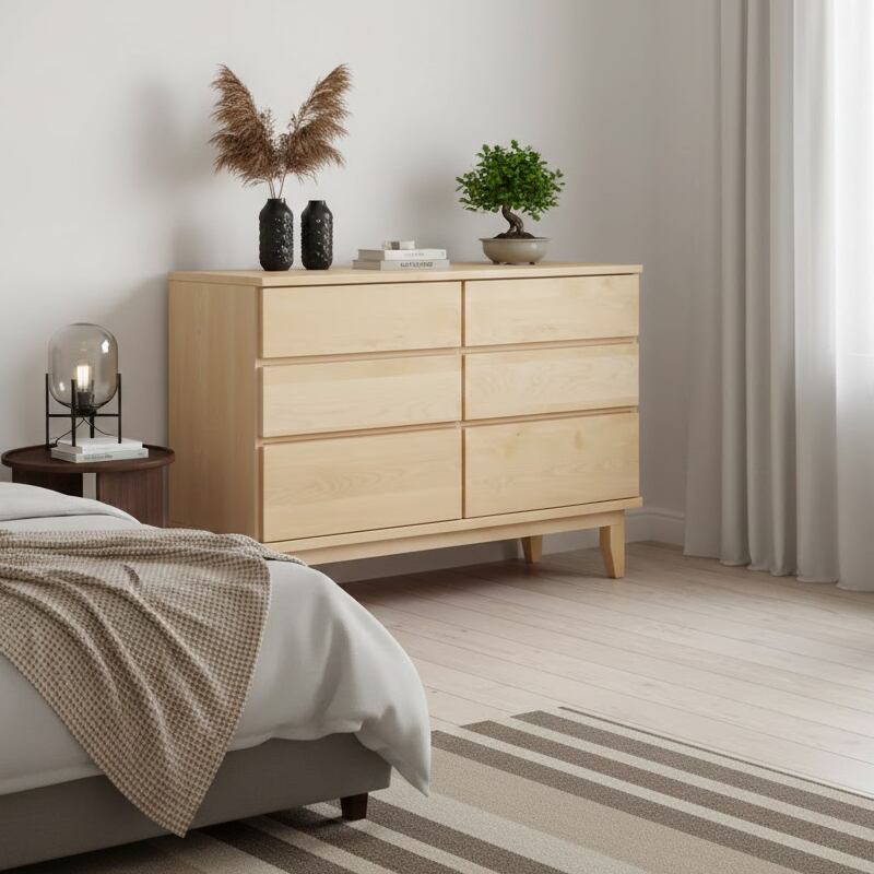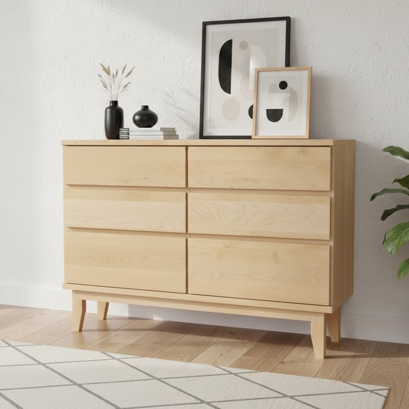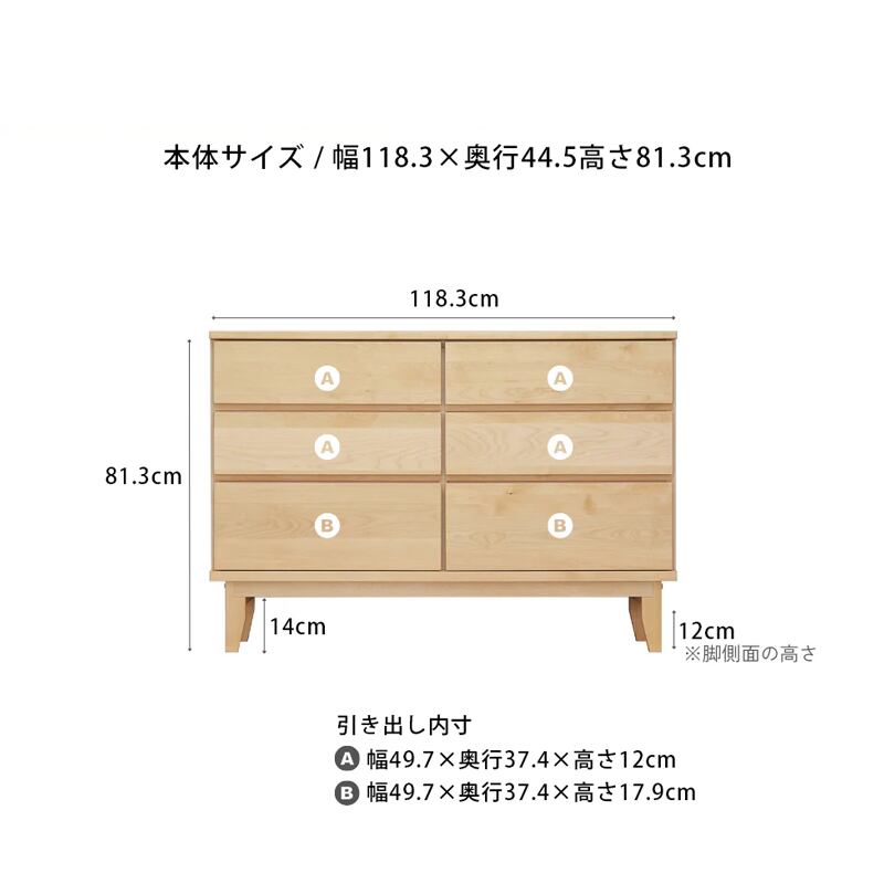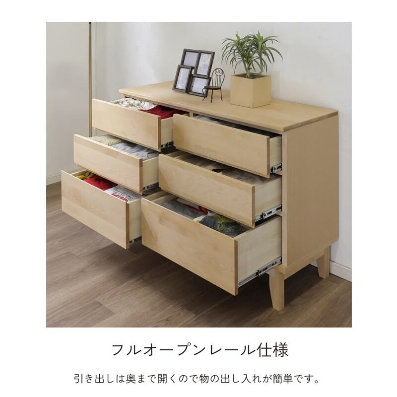 天然バーチの無垢材を天板と前板に贅沢に使用した木の温かさがあふれるワイドチェストです。