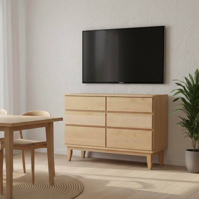 チェスト 120cm 国産 リビングボード バーチ材 無垢材 日本製 自然塗装 フルオープン 引き出し収納 木製 北欧 ナチュラル サイドボード 完成品 OKLAHM