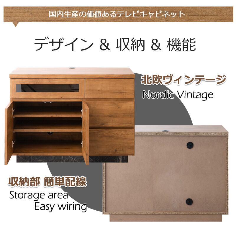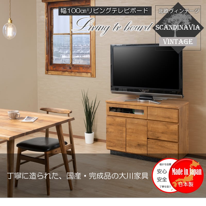 テレビボード 幅100 日本製 完成品 北欧ヴィンテージ オーク調 ガラス扉 収納付き テレビ台 ローボード 木目調 ナチュラル 32型 40型 43型対応 WR