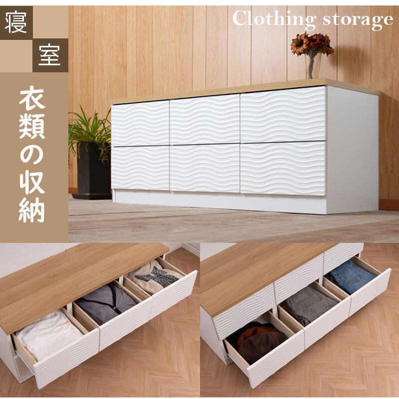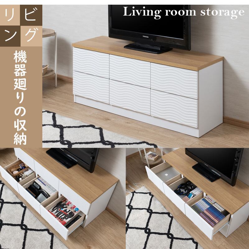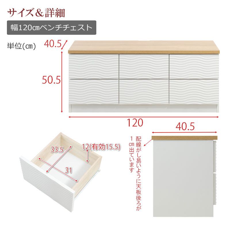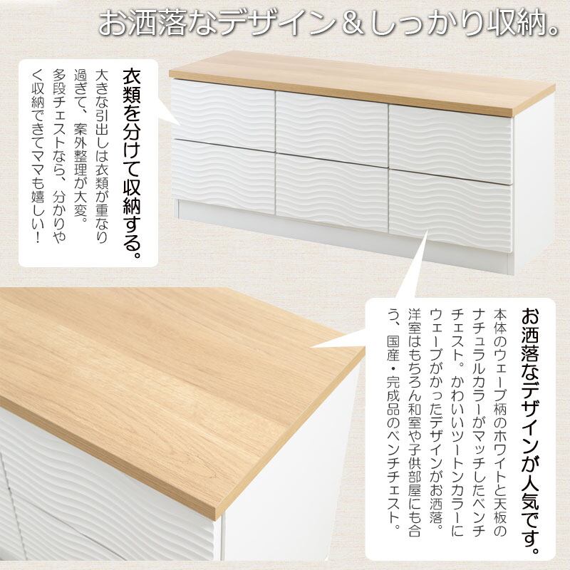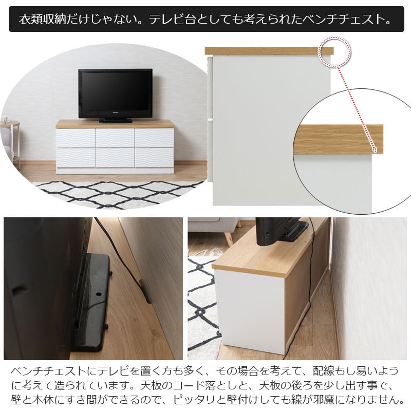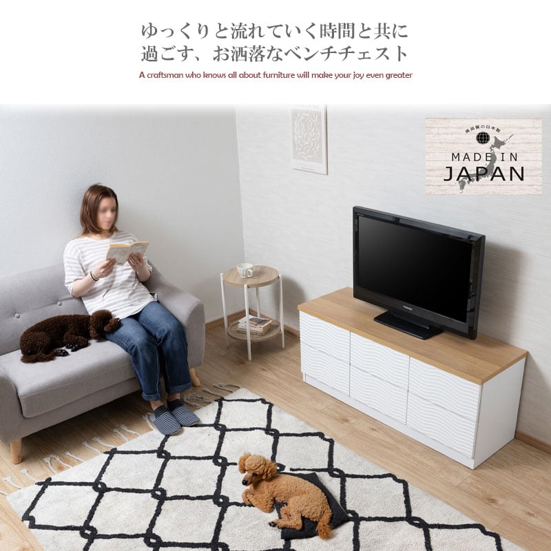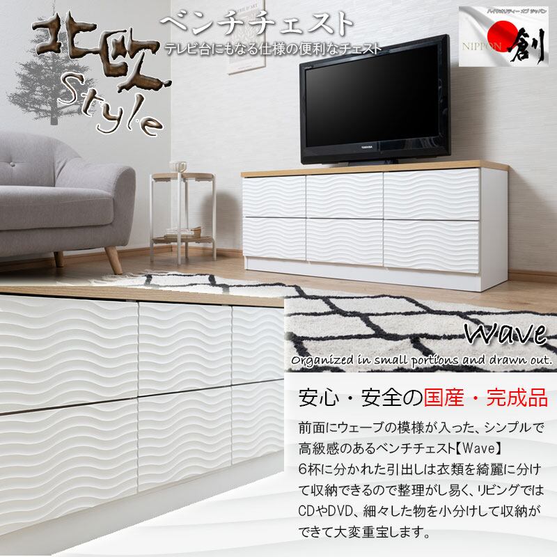日本製 完成品 120cm ベンチチェスト テレビ台 収納チェスト 6杯引出し 北欧モダン収納 WAVE