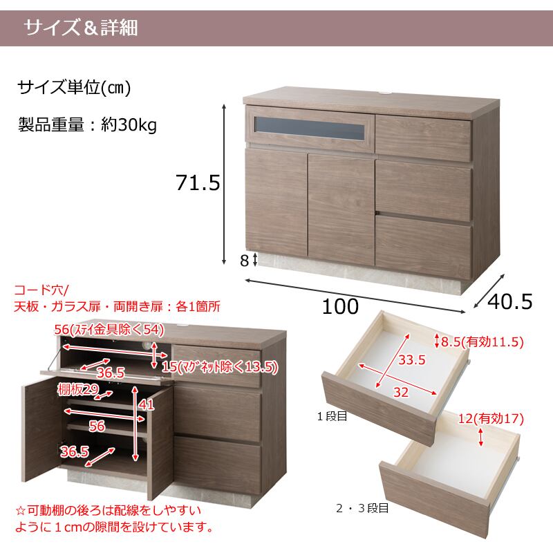■商品サイズ(約) 幅100×奥行40.5×高さ71.5cm