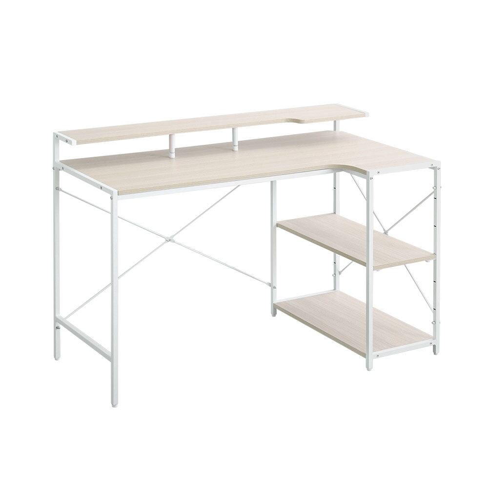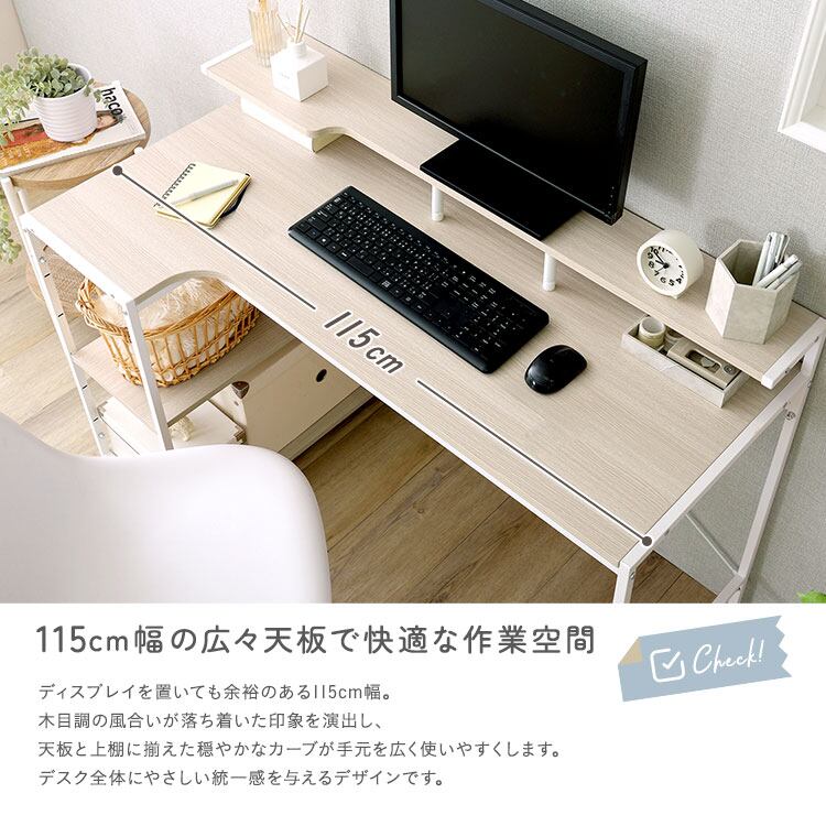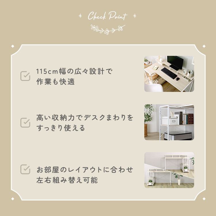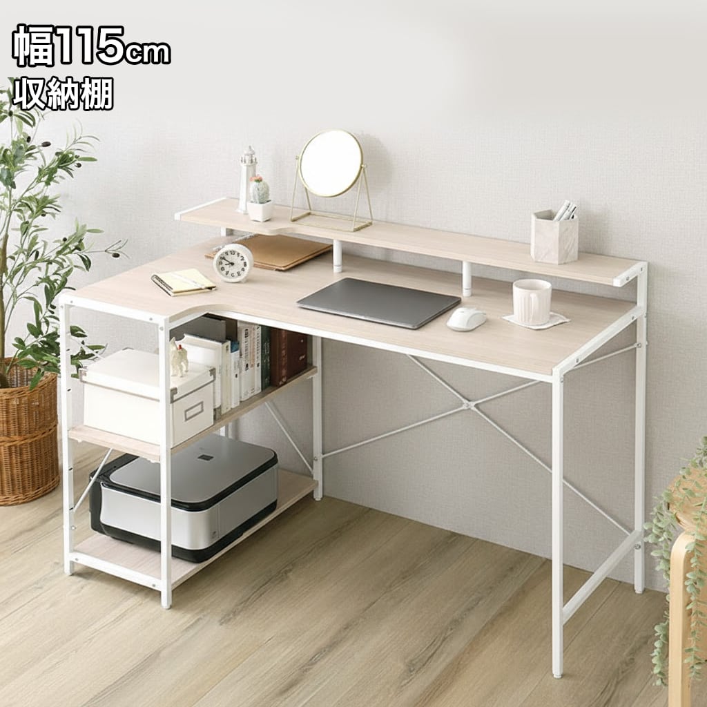 【左右組み替えOK】棚付きL字デスク 幅115cm 在宅ワークも快適に整う、やさしい木目デザイン 清潔感