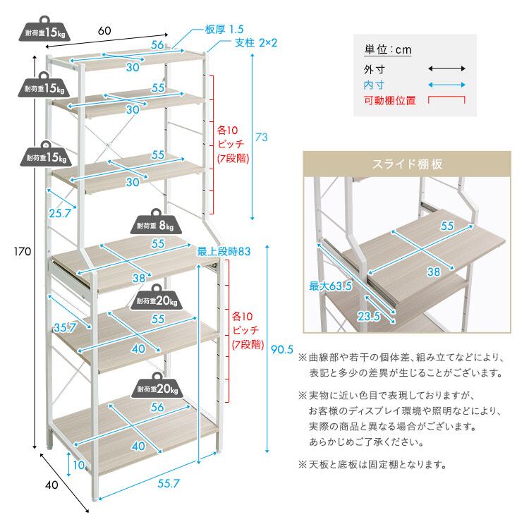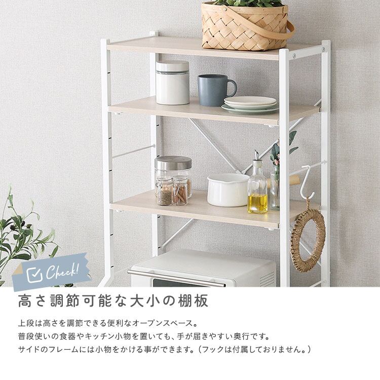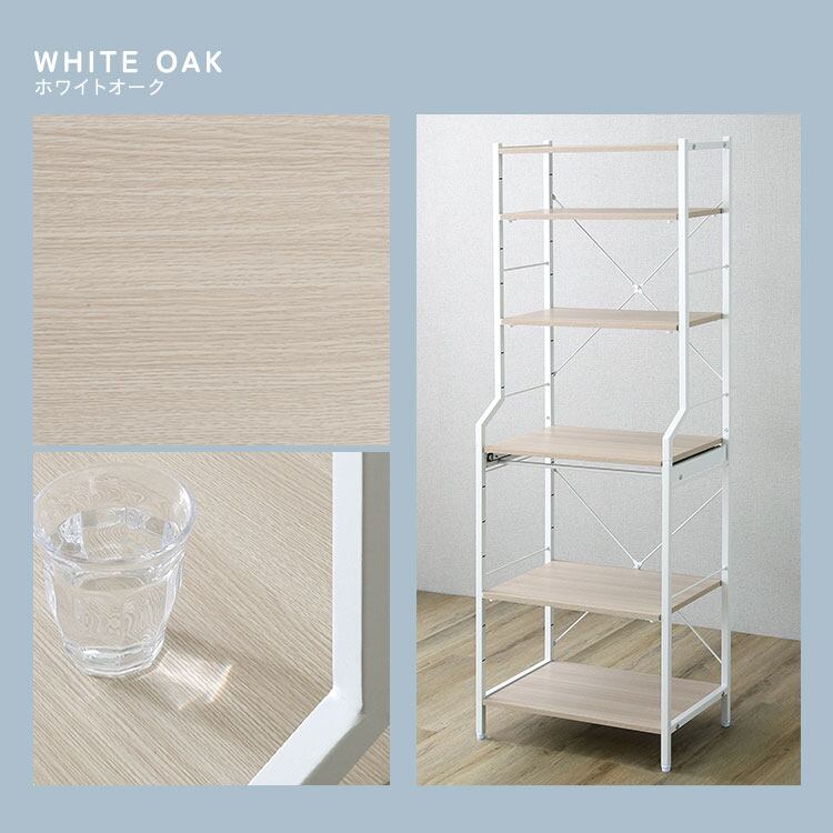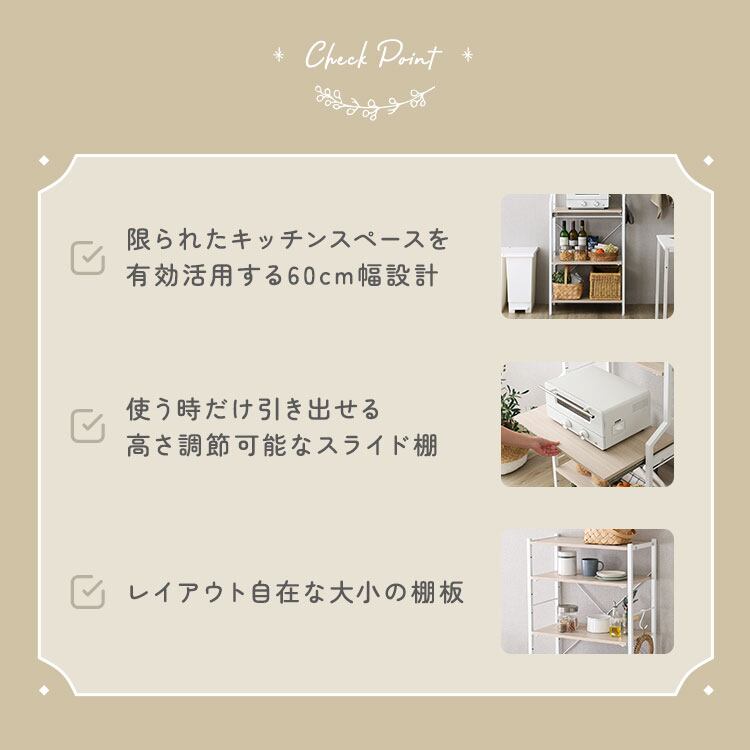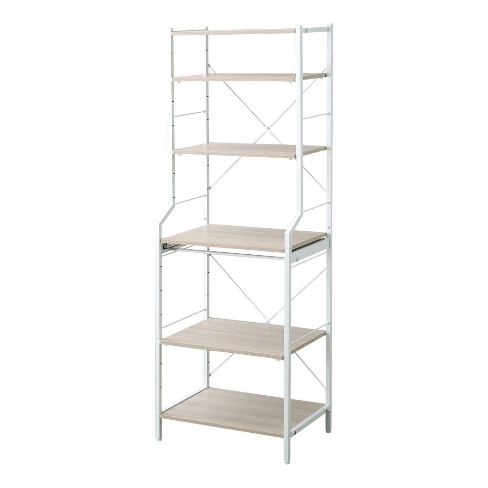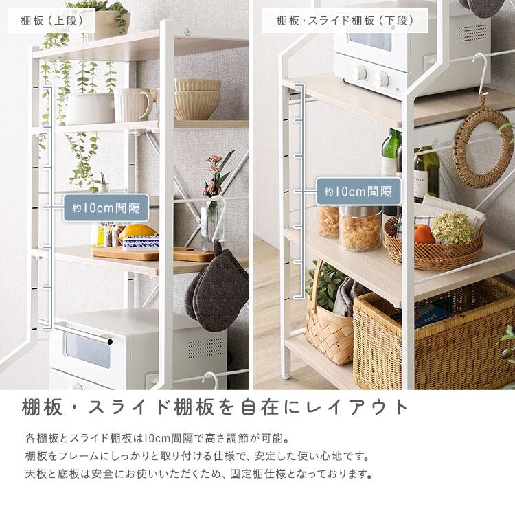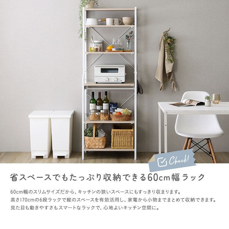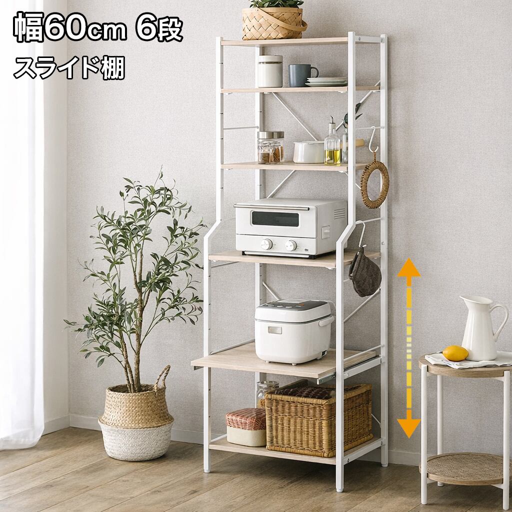 レンジ台 幅60cm 6段 レンジラック ハイタイプ スライド棚 キッチンラック キッチン収納 大型レンジ対応 収納棚 北欧 ナチュラルホワイト アイアン スリム