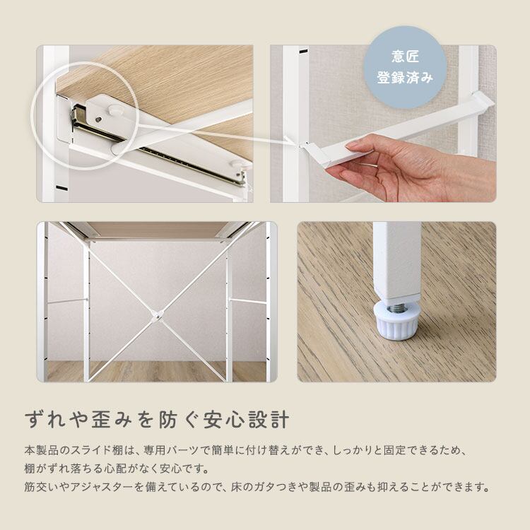 スムーズなスライド棚: 蒸気の出る家電も手前に引き出して快適に使用可能。