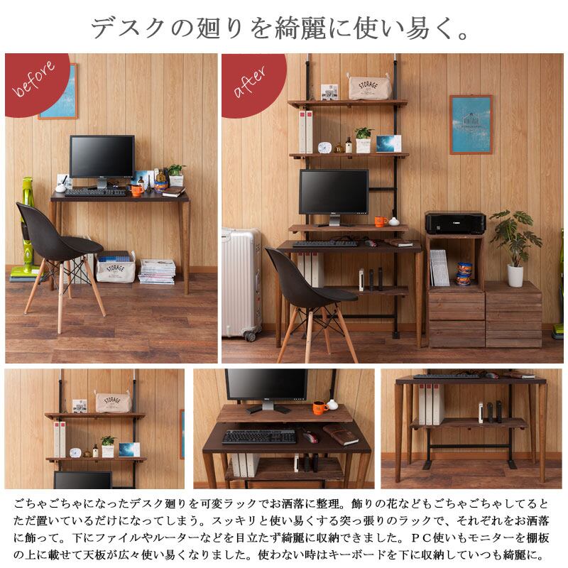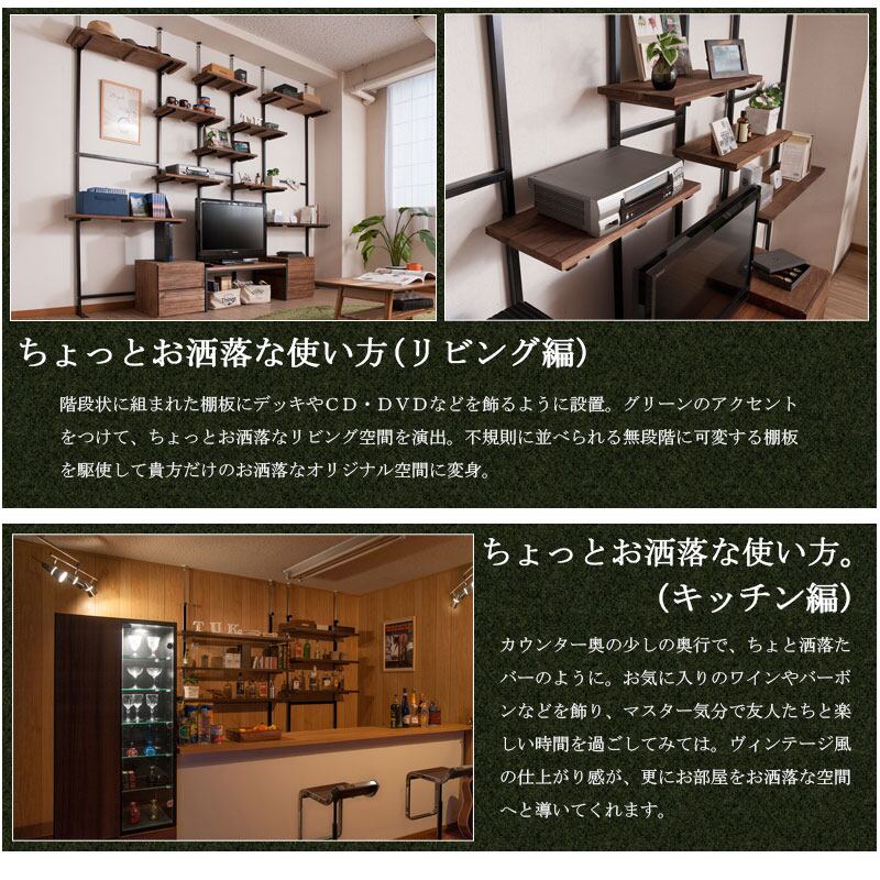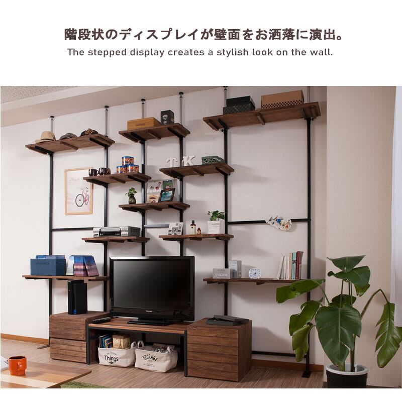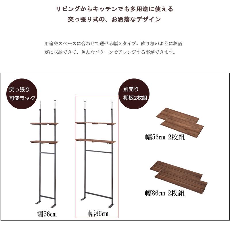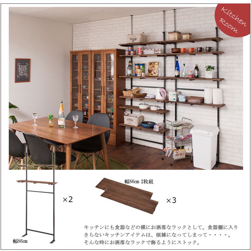 【日本製】天然木杉ヴィンテージ突っ張りラック 幅86cm 壁面をカフェ空間にする収納棚 MVE