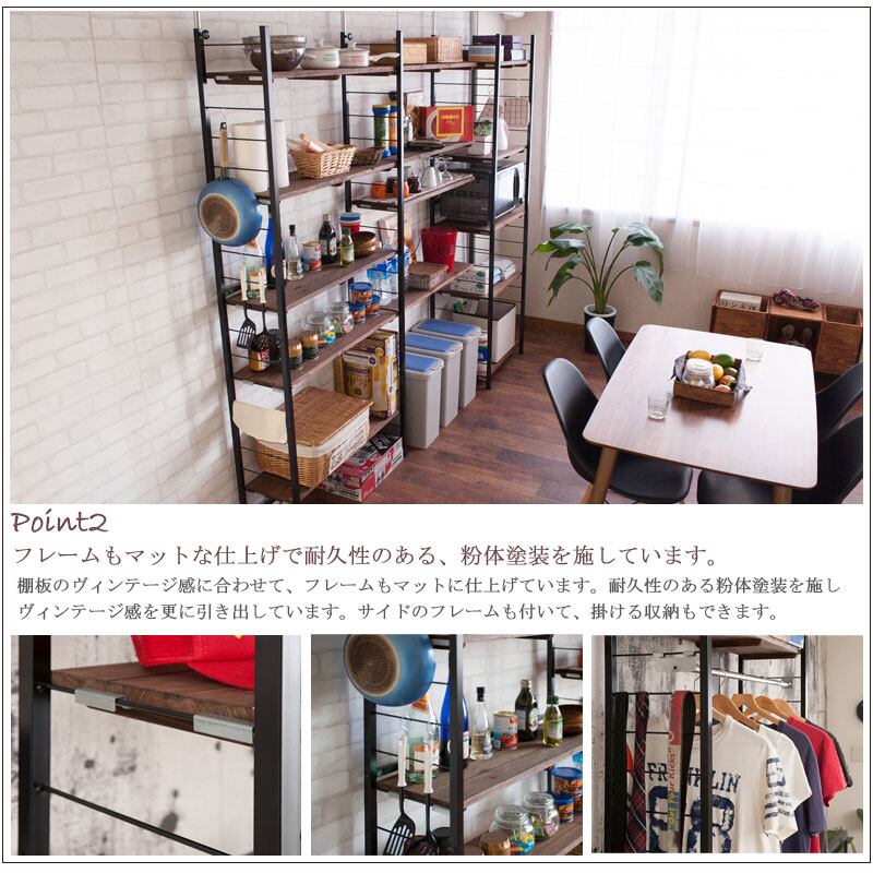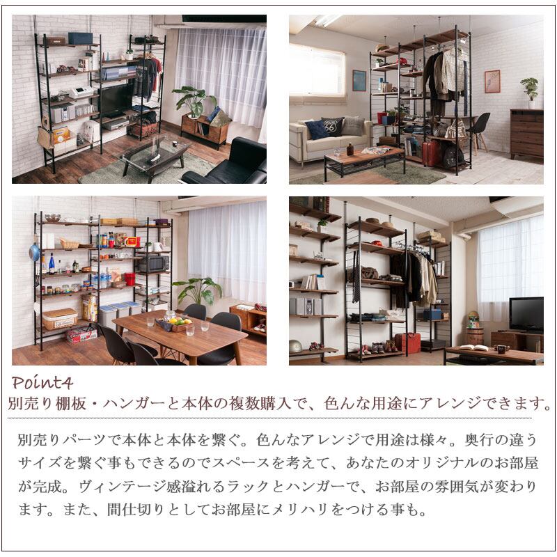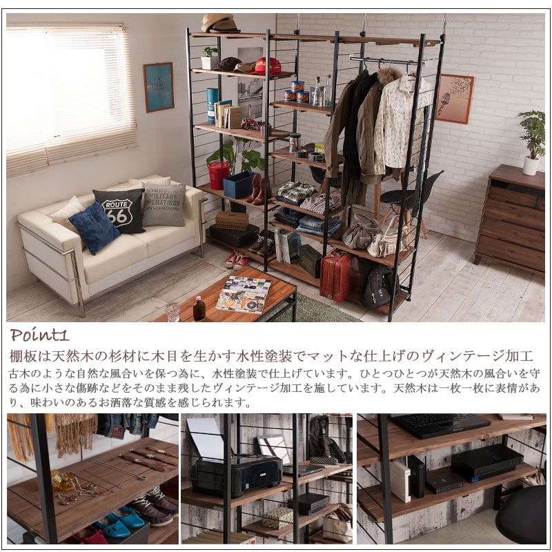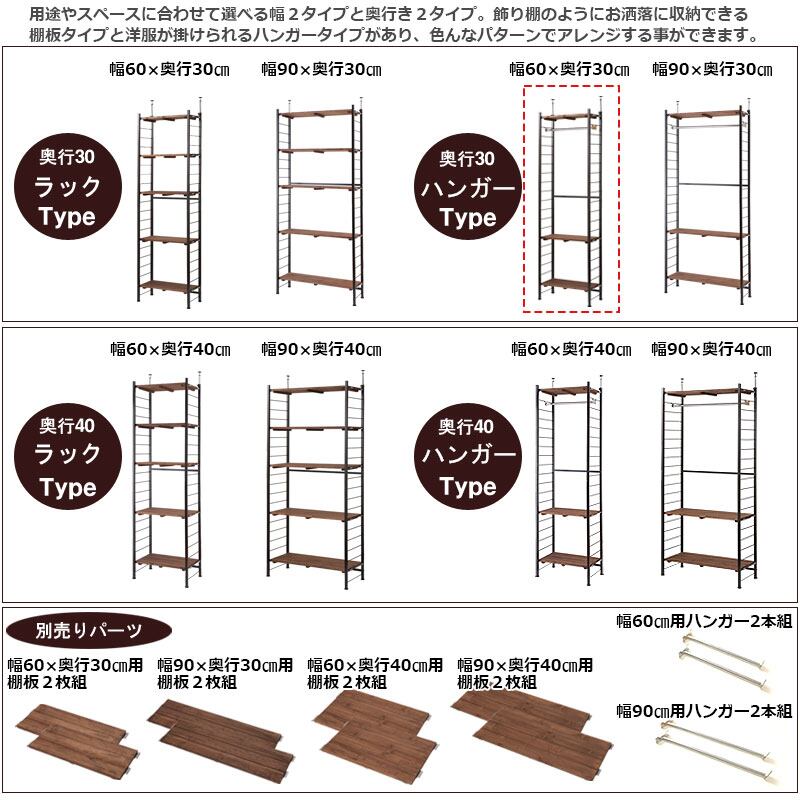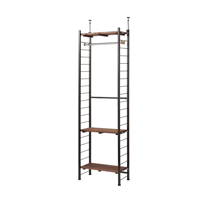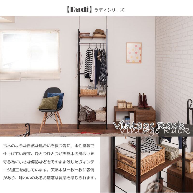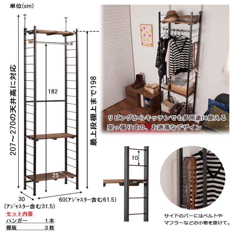 【日本製】天然木杉ヴィンテージ突っ張りラック60×30cm ハンガーバー付きワードローブ対応・壁面収納・間仕切り対応 つっぱり RDI