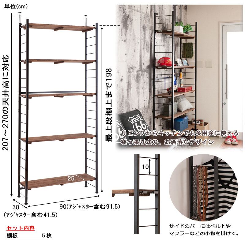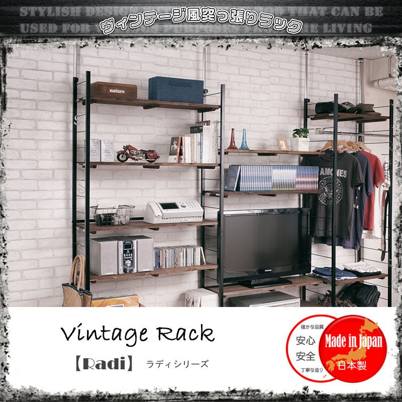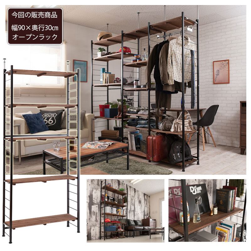 【日本製】天然木杉ヴィンテージ突っ張りラック90×30cm オープンラック 可動棚・壁面収納・間仕切り対応 つっぱり RDI