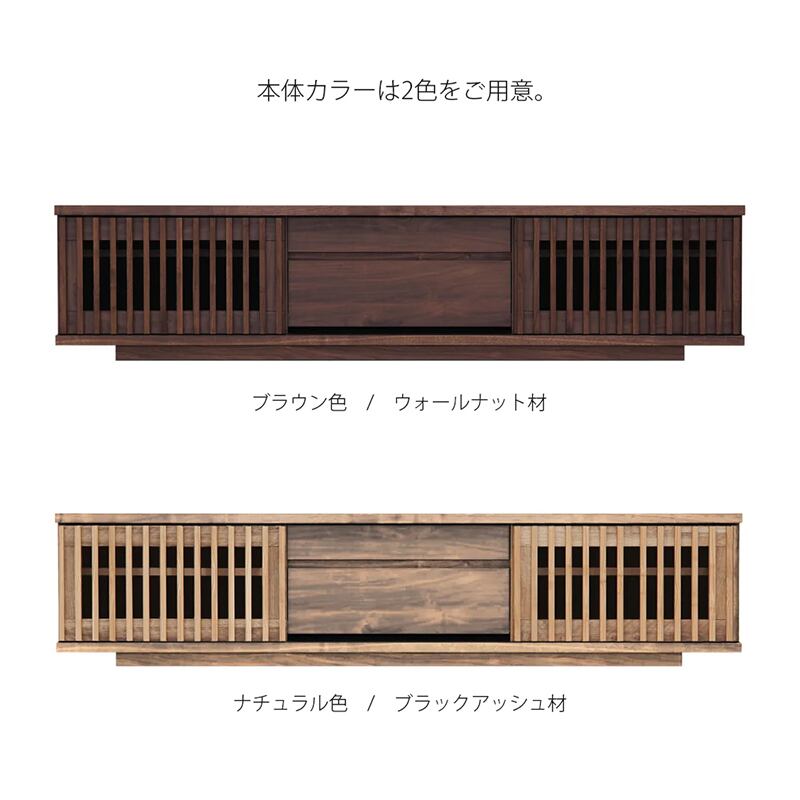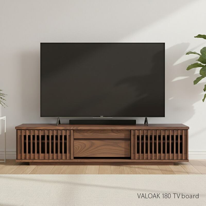 VALOAK テレビボード 幅180cm 日本製 完成品 ブラックアッシュ無垢 ブラウン色 大型TV対応 ジャパンディ 北欧モダン ルーバー 引き戸 可動棚 天然木 ローボード リビング収納 |Japan Made
