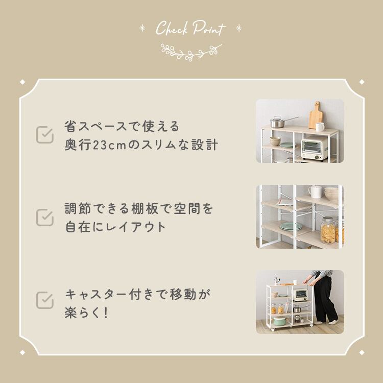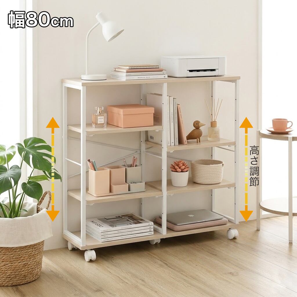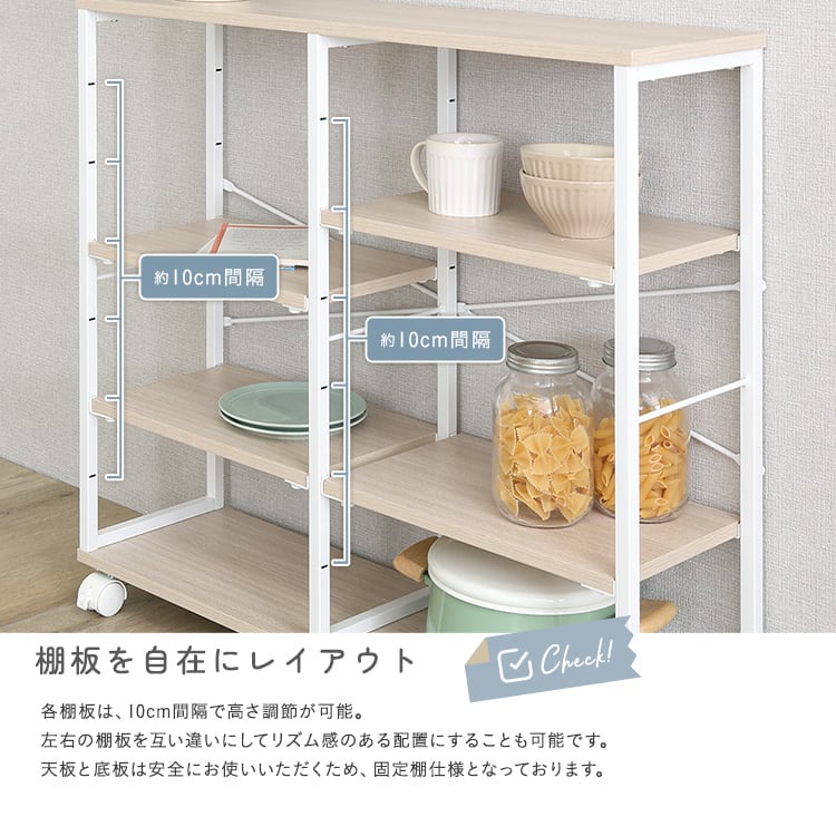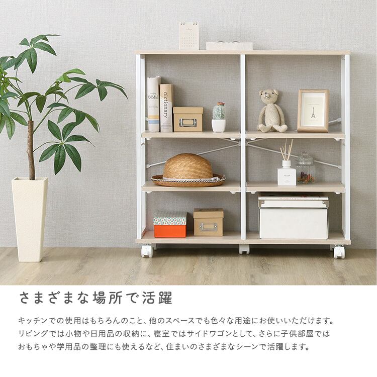 置くだけで整うキッチン・リビング・ワンルームに最適な、可動棚付きスリム収納ワゴン