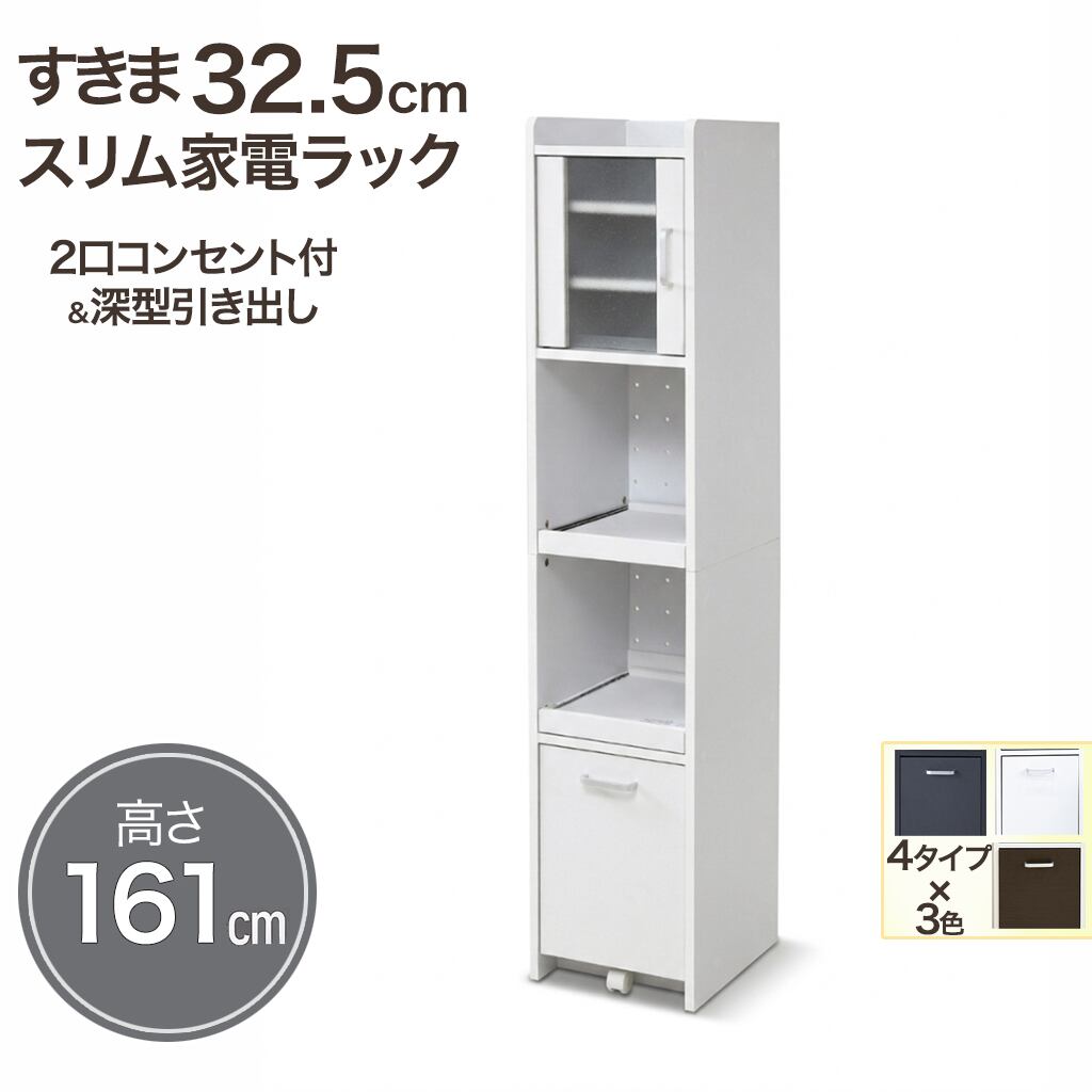 すきま収納スリム家電ラック|冷蔵庫横・キッチン横に置ける幅32.5cm|すりガラス扉で生活感を隠す上品収納 161cmタイプ