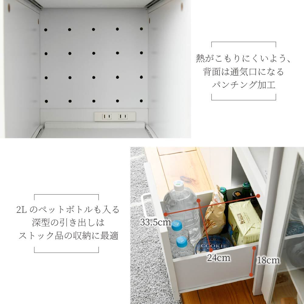 スライド棚で炊飯器・ポットも快適。