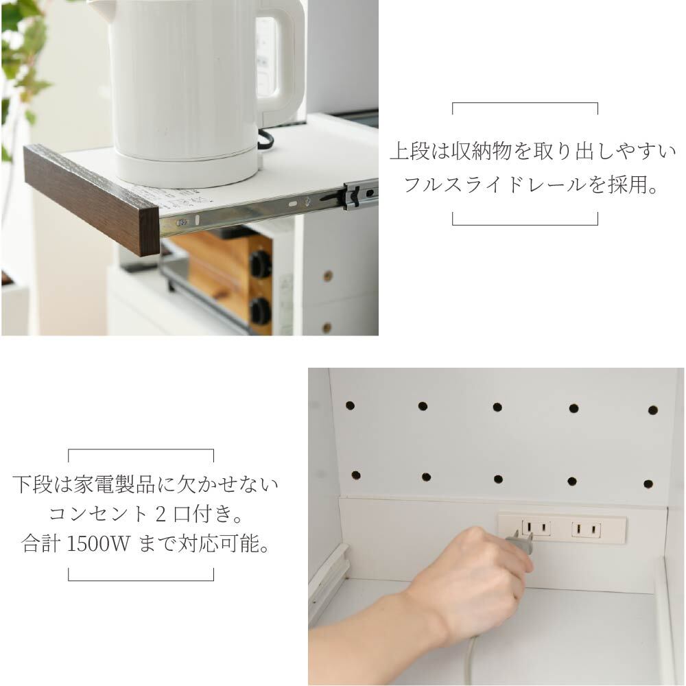 スライド棚で炊飯器・ポットも快適。