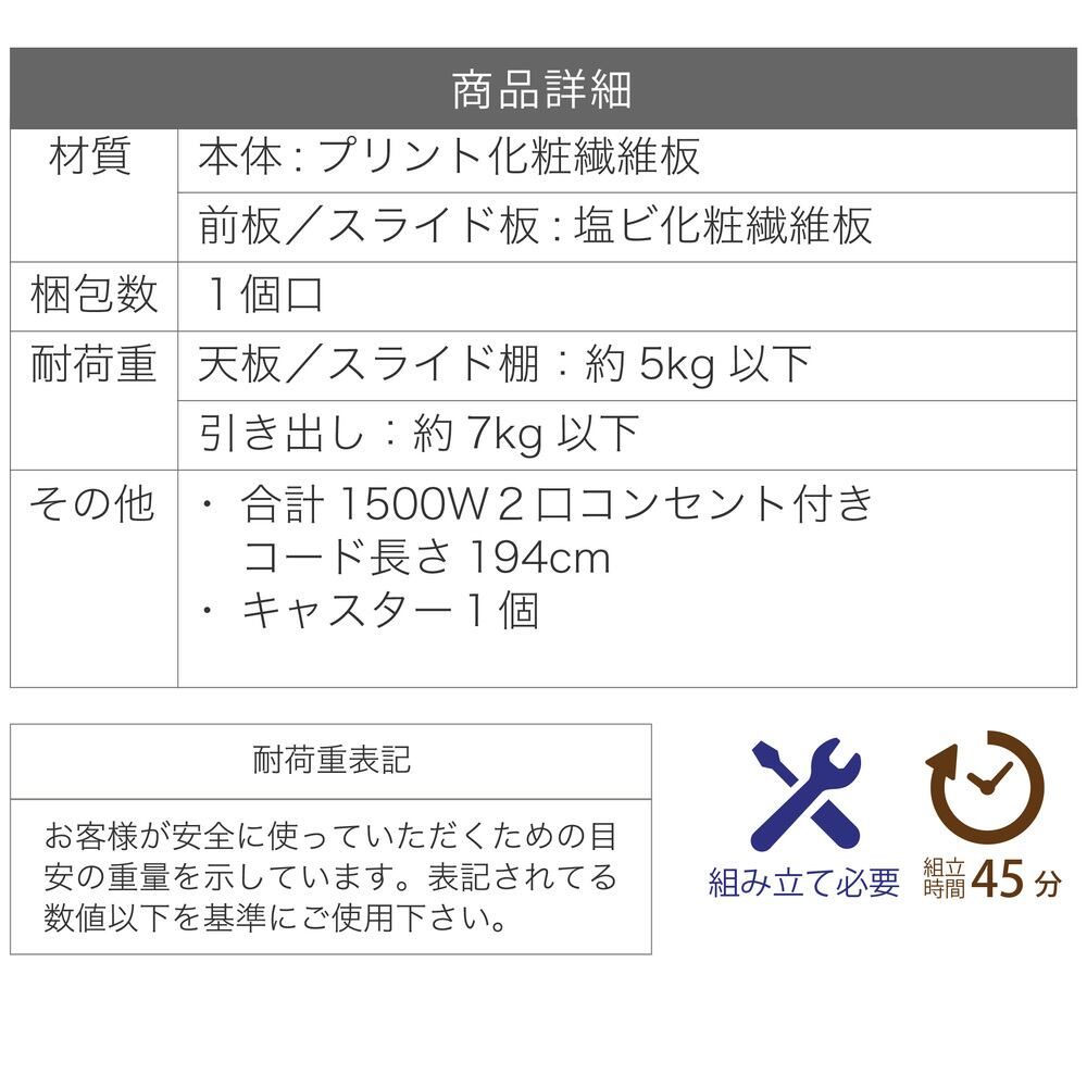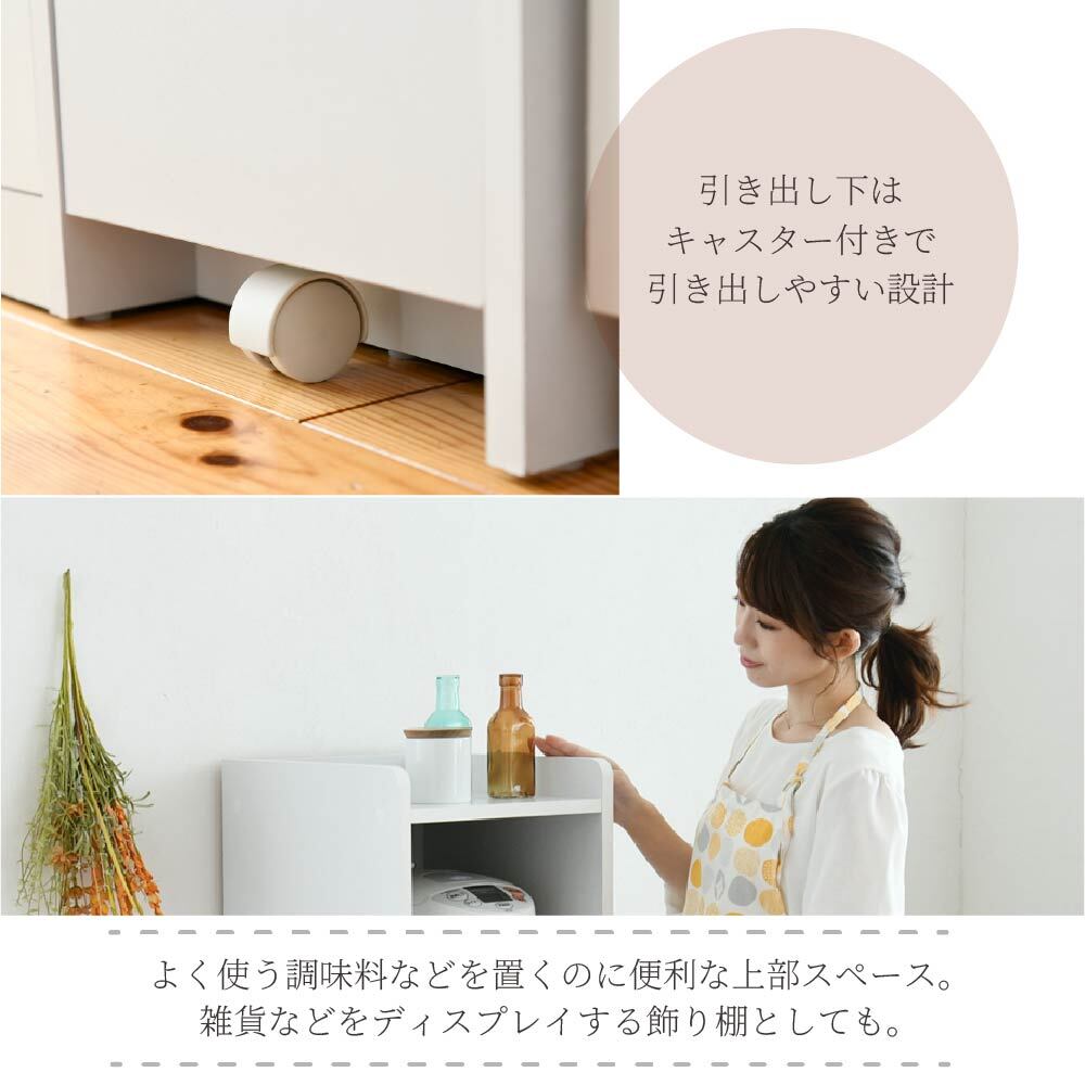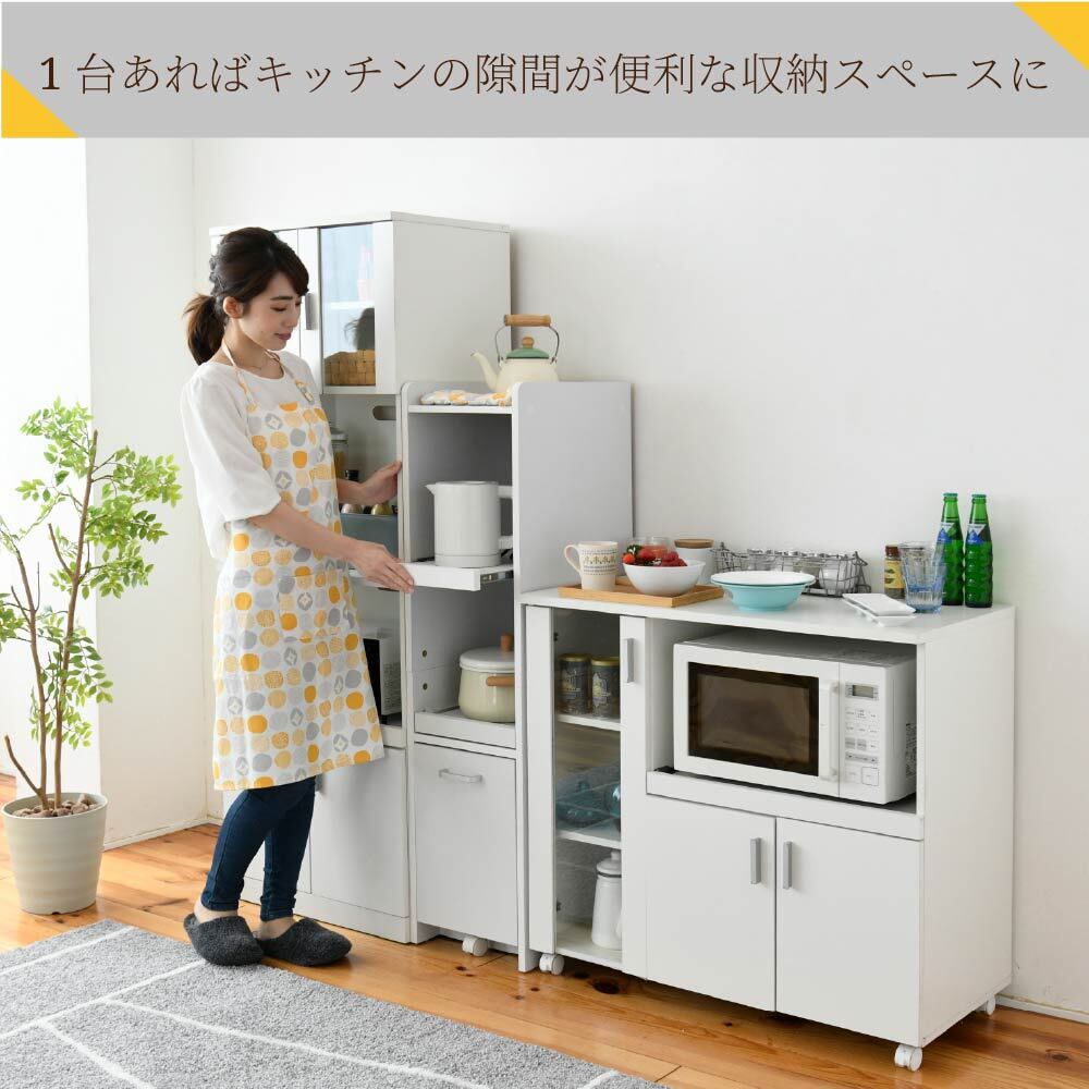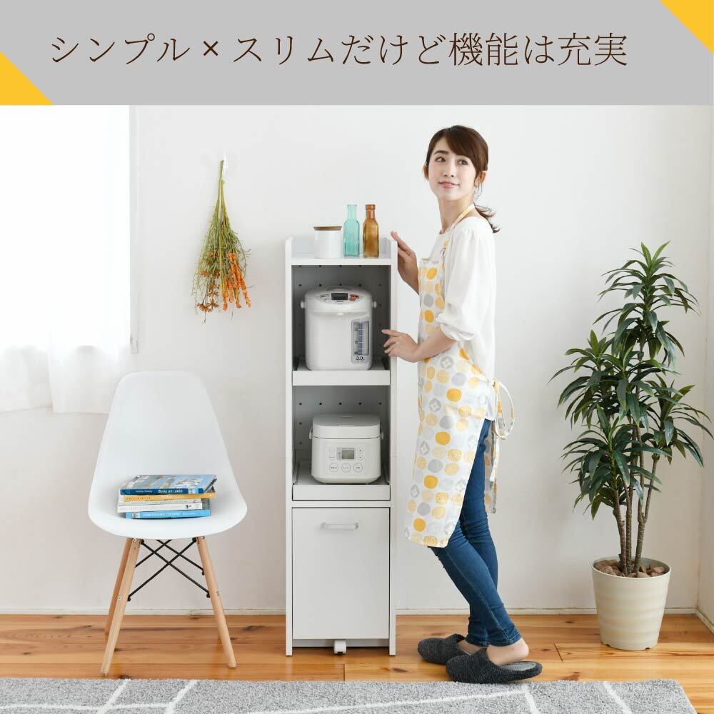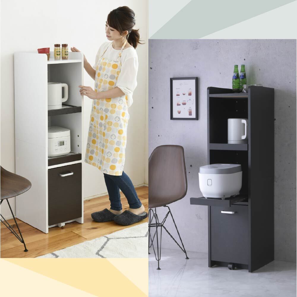 スライド棚2段で炊飯器やポットを快適に。