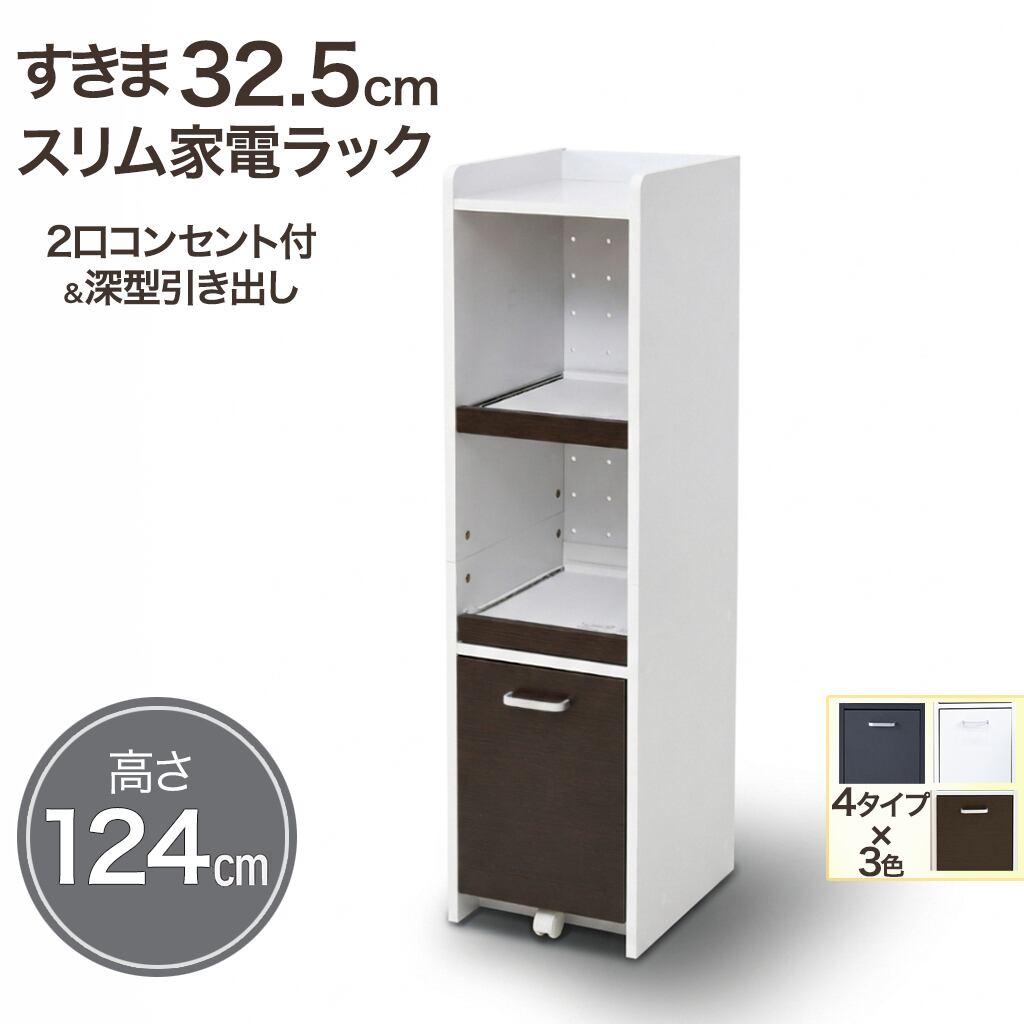 すきま収納スリム家電ラック|キッチン・冷蔵庫横に置ける幅32.5cm省スペース設計|2口コンセント付・選べる4サイズ3色