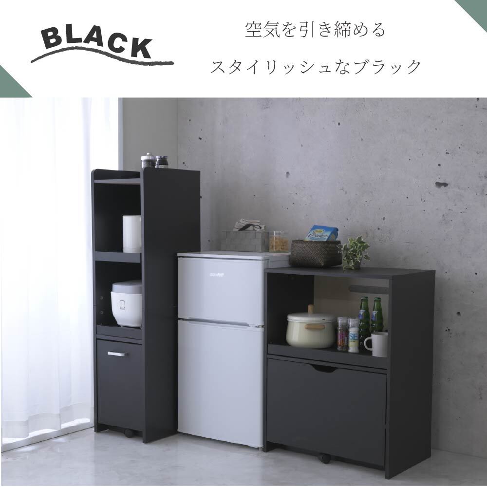 30cm 30センチ キッチン収納 コンパクト 引き出し キッチンラック コンパクト すきま収納 おしゃれ シンプル レンジ台 トースターラック ストック キャスター付き レンジ台 食器 ブラック