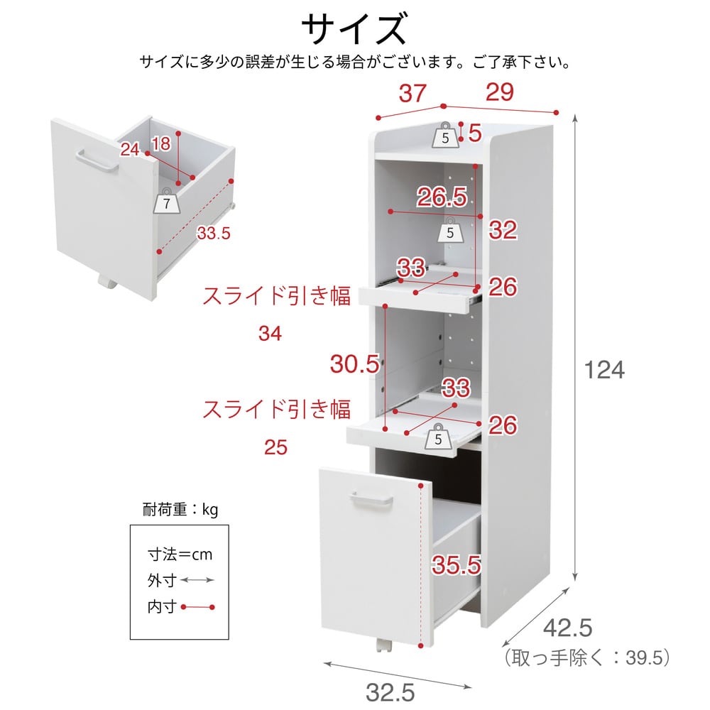[外寸]幅32.5×奥行42.5×高さ124cm