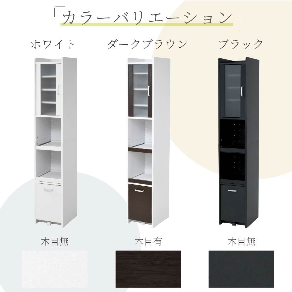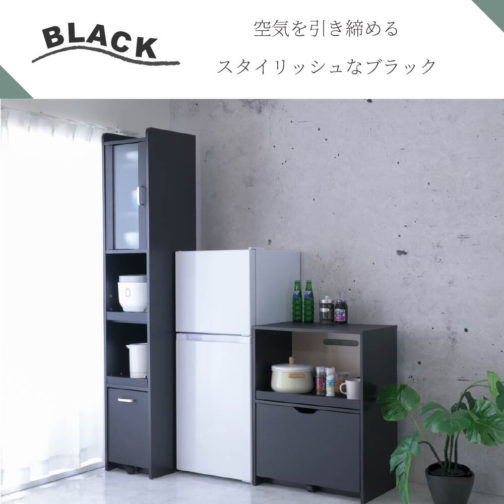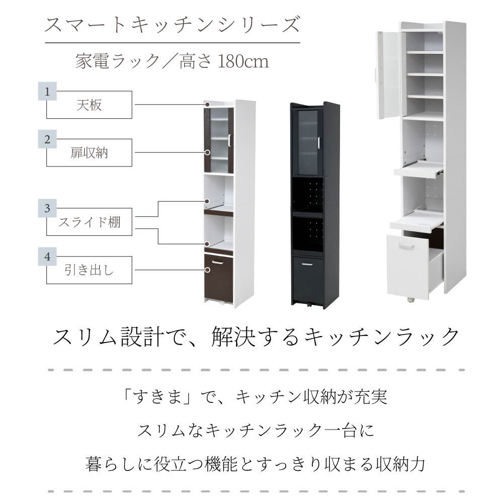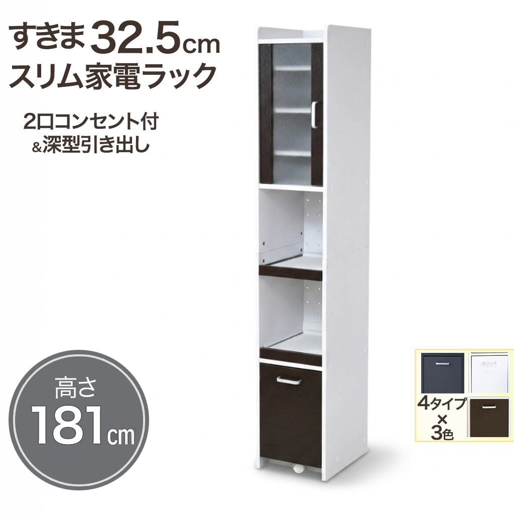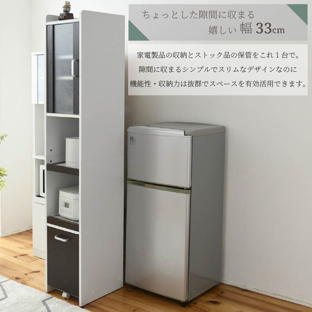 すきま収納スリム家電ラック|冷蔵庫横・キッチン壁面に置ける幅32.5cm|すりガラス扉で生活感を隠す大容量181cmタイプ