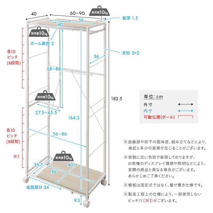 (約)幅60~90×奥行40×高さ182.5cm