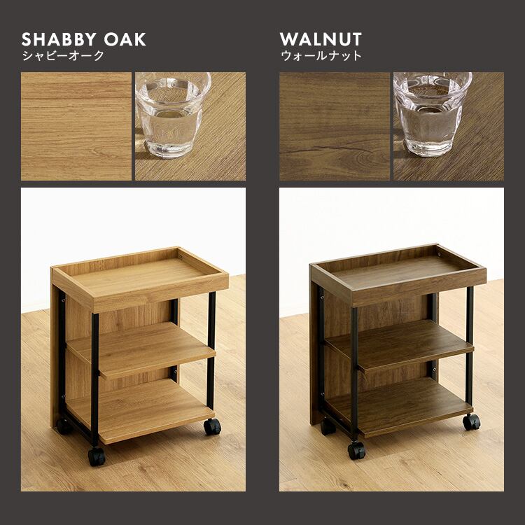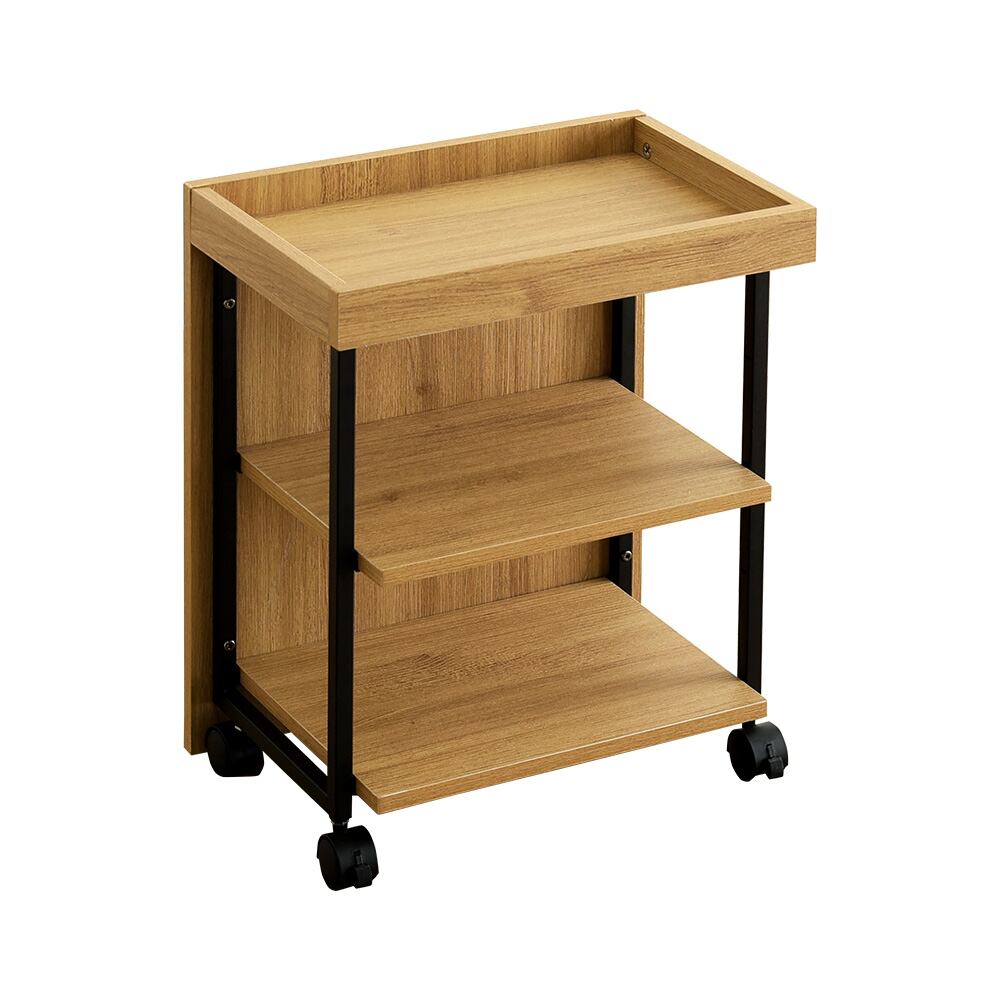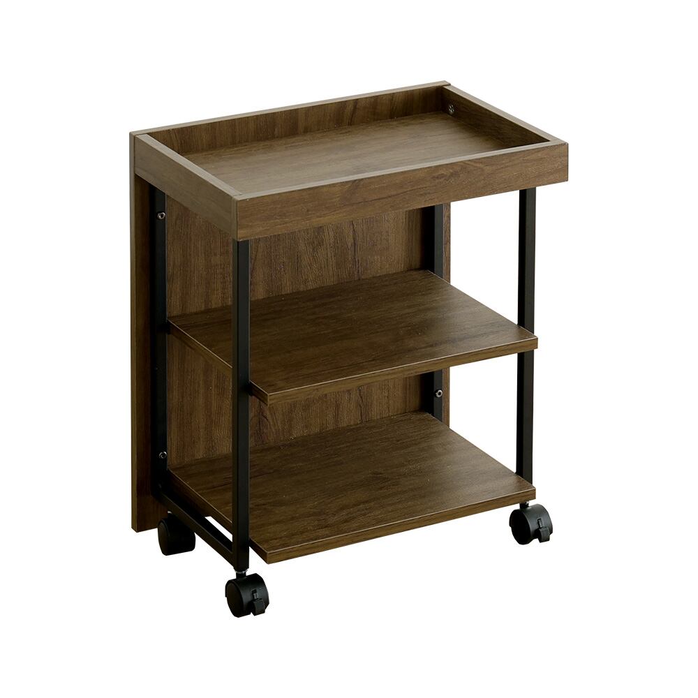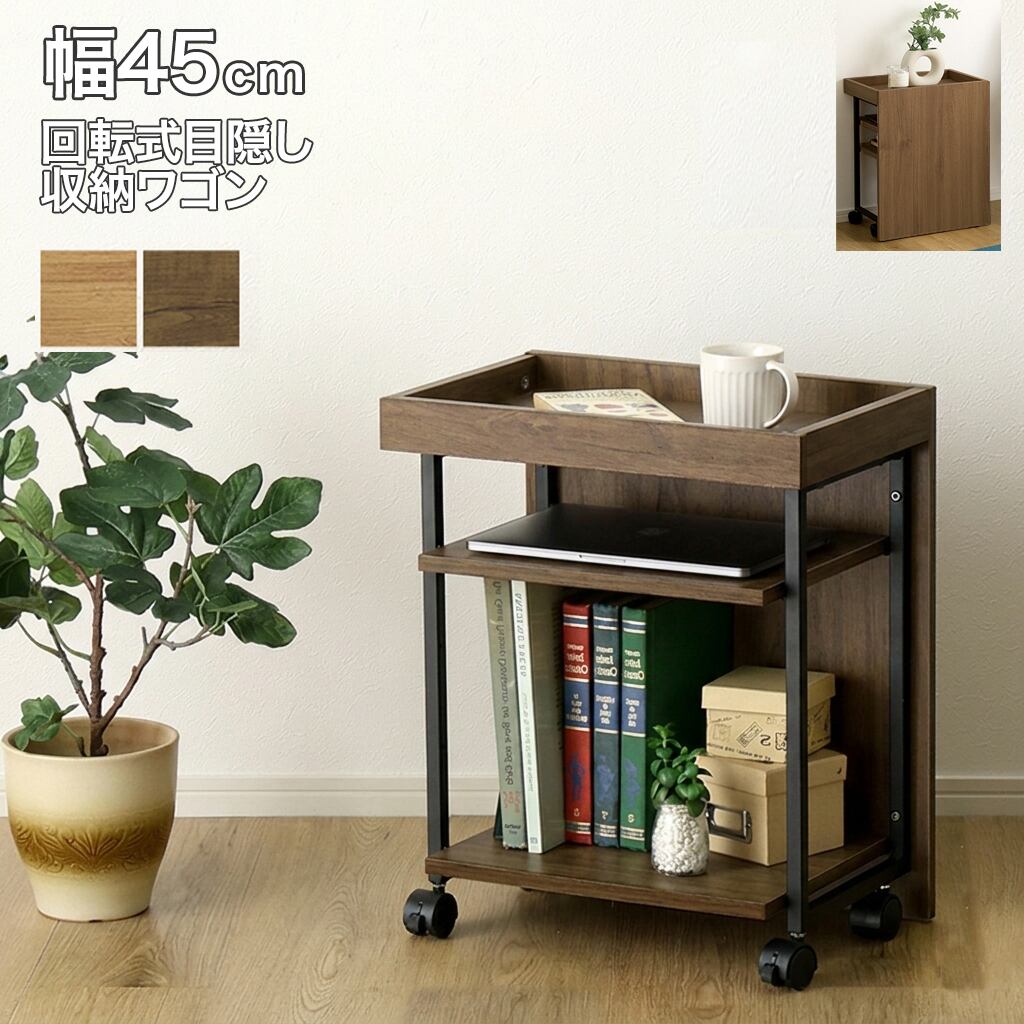 回転式目隠し収納ワゴン|サイドテーブル兼キッチンワゴン 幅45cm 省スペース 可動棚付き リビング・ダイニング対応 ヴィンテージ調