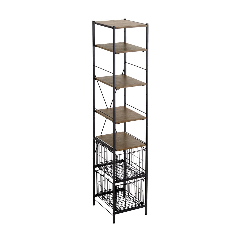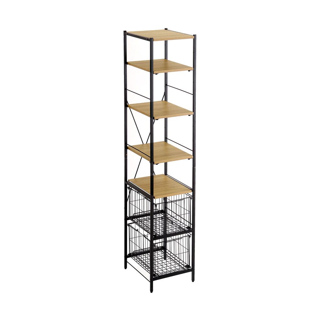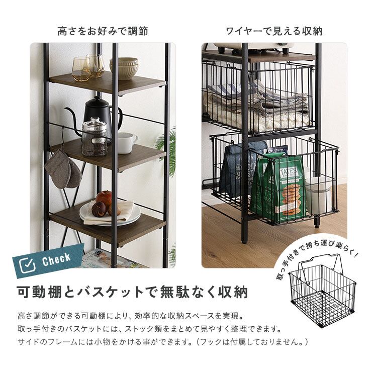 ヴィンテージ調カゴ付きキッチンラック ハイタイプ