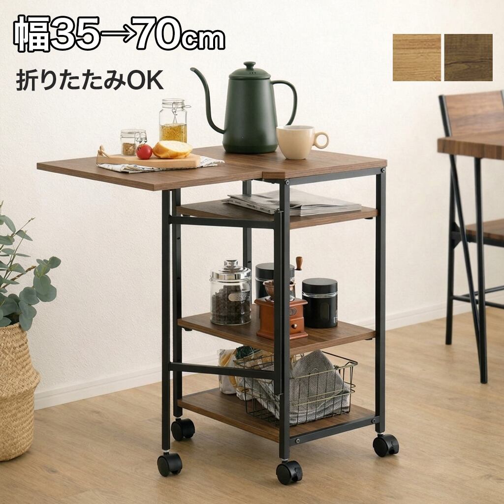 バタフライワゴン キッチンワゴン 折りたたみ 伸縮 70cm 作業台 キッチンカート キャスター付き スリム 収納ワゴン 可動棚 ヴィンテージ 木目