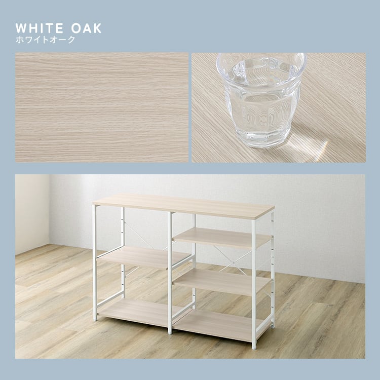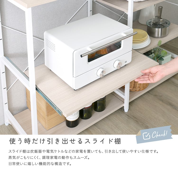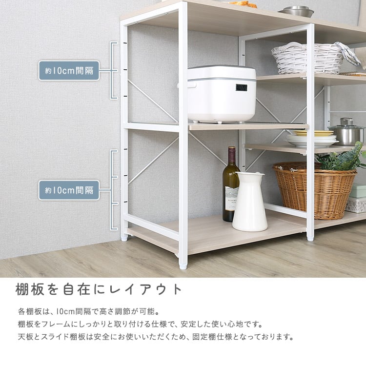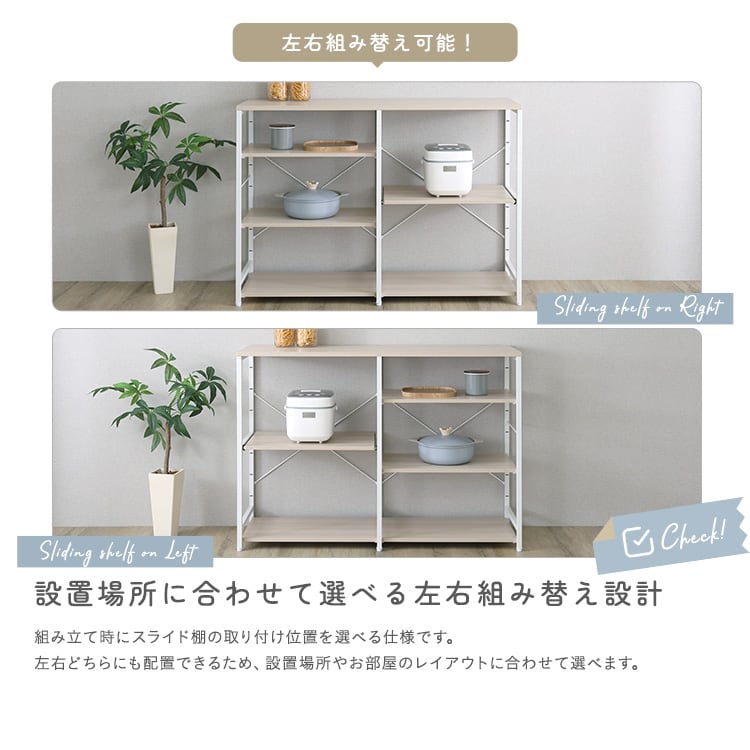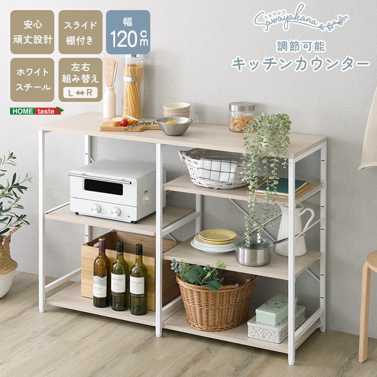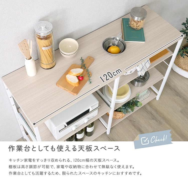 キッチンカウンター 幅120 収納 作業台 スライド棚 キッチン収納 棚付き キッチンラック 食器棚 木目 スチール 北欧ナチュラル