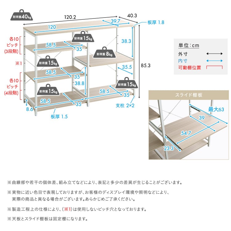 スライド棚:(約)8kg