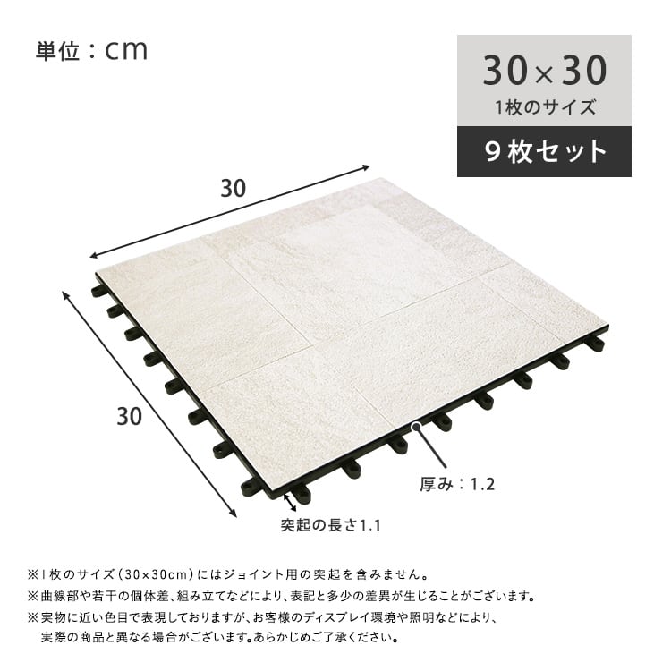 遮熱パネル ジョイントタイル 30×30cm 9枚入り ベランダ タイル 庭 タイル 遮熱マット 屋外 床材 日よけ 断熱 タイルパネル 軽量 DIY