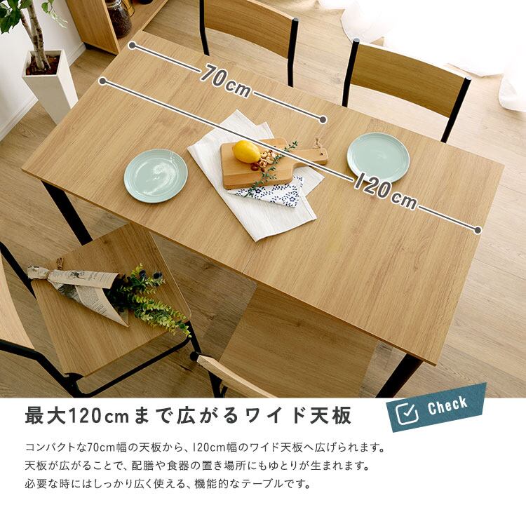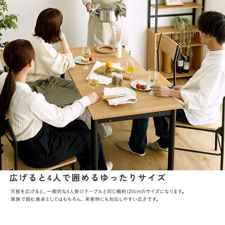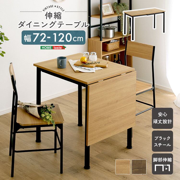 ダイニングテーブル 伸縮 2人用 4人用 幅120 コンパクト テーブル 伸長式 省スペース 食卓テーブル 木目 ヴィンテージ調
