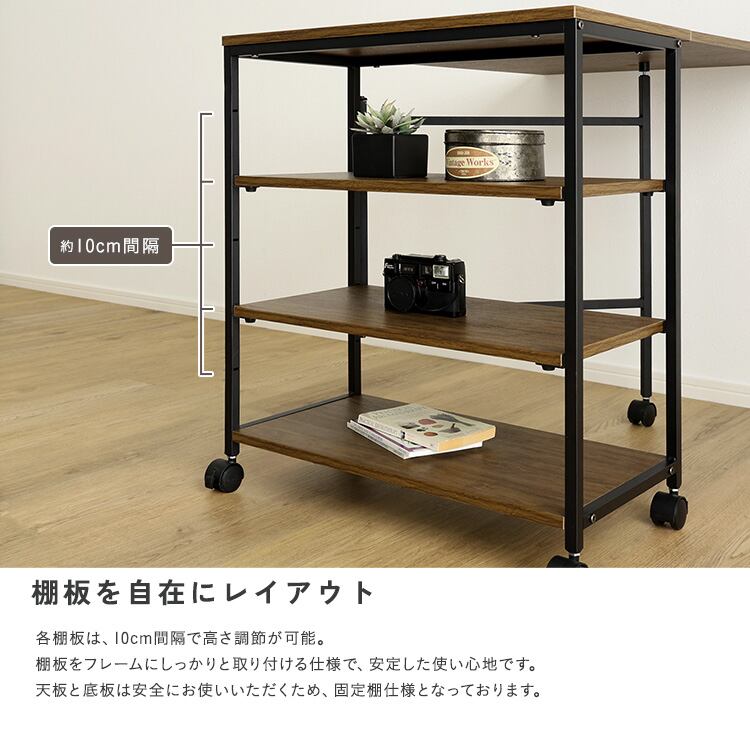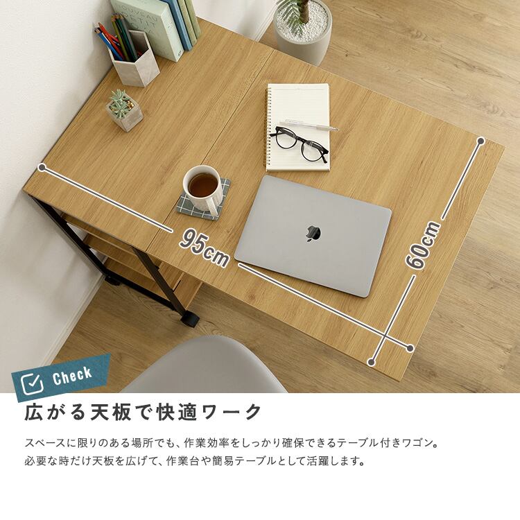 ワゴン テーブル付き 折りたたみ 幅95 作業台 キッチンワゴン キャスター付き 収納ラック コンパクト ヴィンテージ調