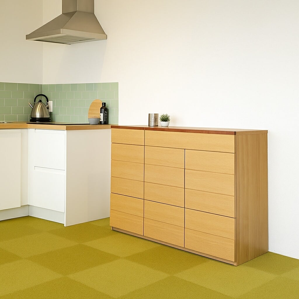 どの様なテイストのインテリアスタイルにもアジャストしてくれるシンプルリビングボードシンプルでスタイリッシュなこのリビングボードはディテールの作りこみも良くいつもの生活の中に溶け込みつつキッチンスペースのグレードを間違いなく上げてくれるリビングアイテム。