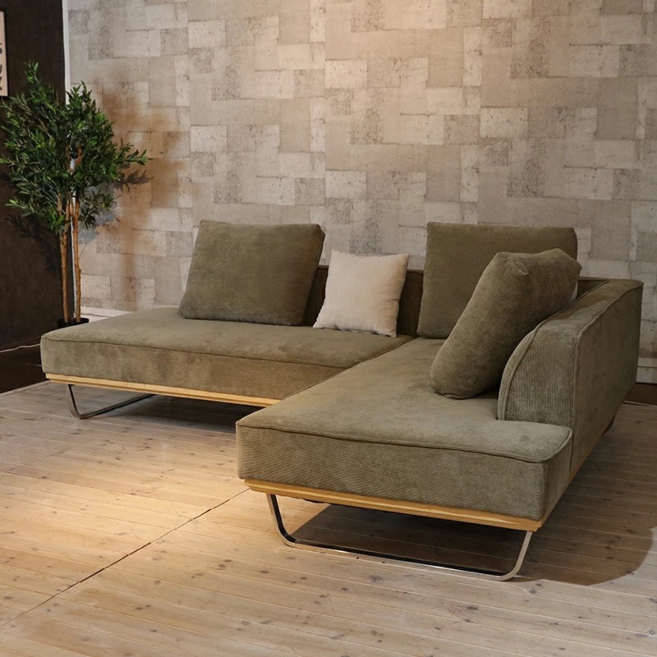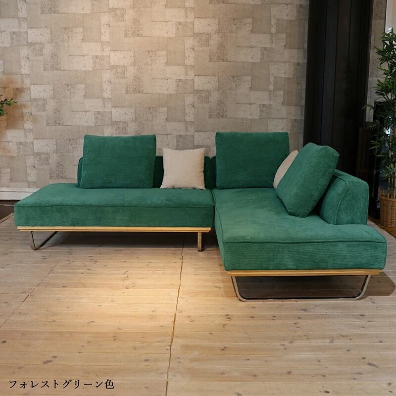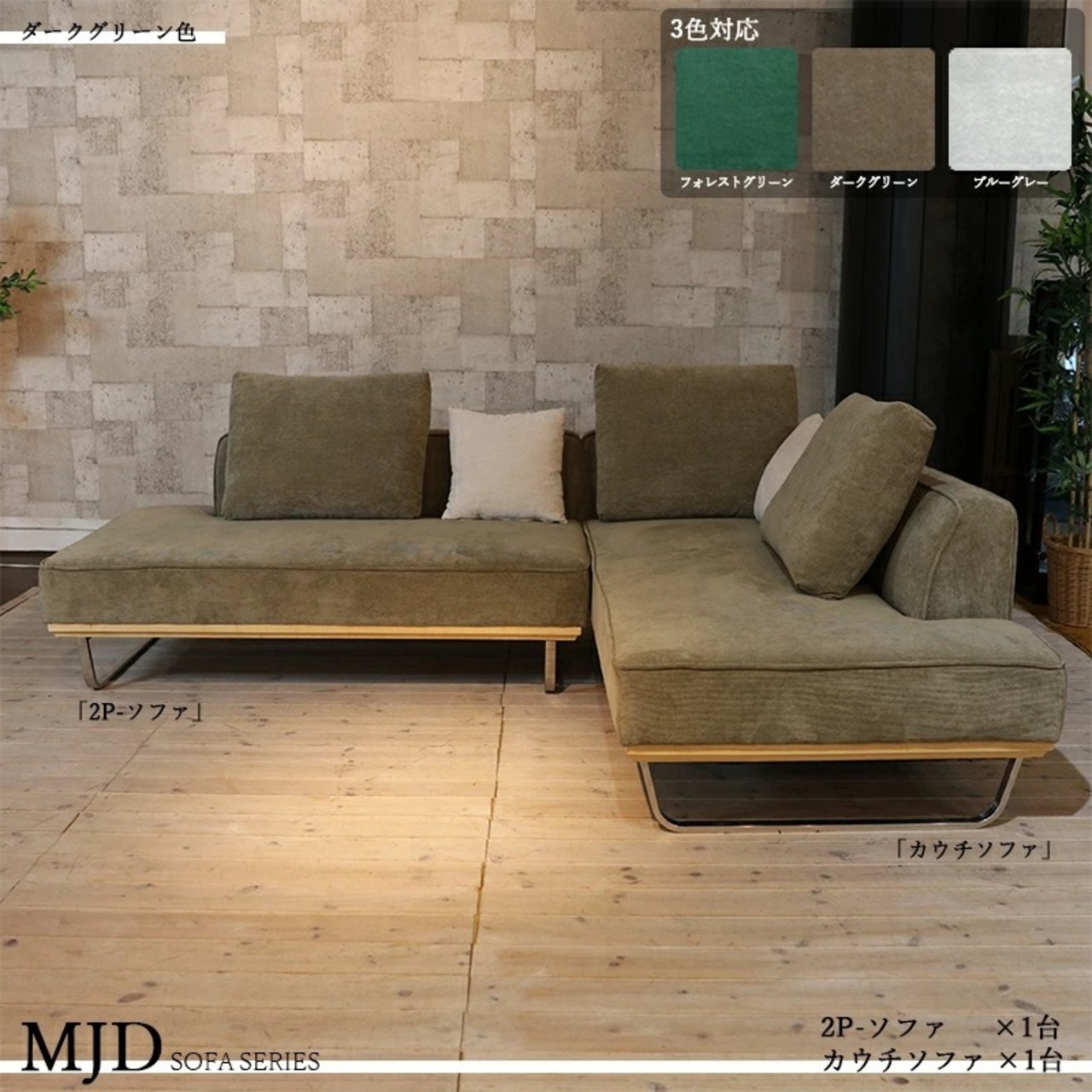 MJD-2PCC 二人掛けソファーとカウチソファのセット カラー| ダークグリーン色/カーキー色:全3色 材 料| ポリエステル(布張り/スエード調) スチール脚 北欧 完成品 ベンチタイプ 大小クッション5個セット