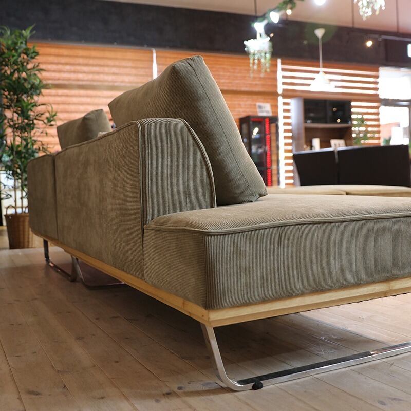 張地はもちろんアンダーフレームの天然木やクロームメッキ仕上げのスチールフレームの脚部まで素材とディテールにこだわったフラットタイプの2Pソファ。シンプルながら機能性も兼ね備えた。ワンランク上のインテリア空間を演出してくれます。