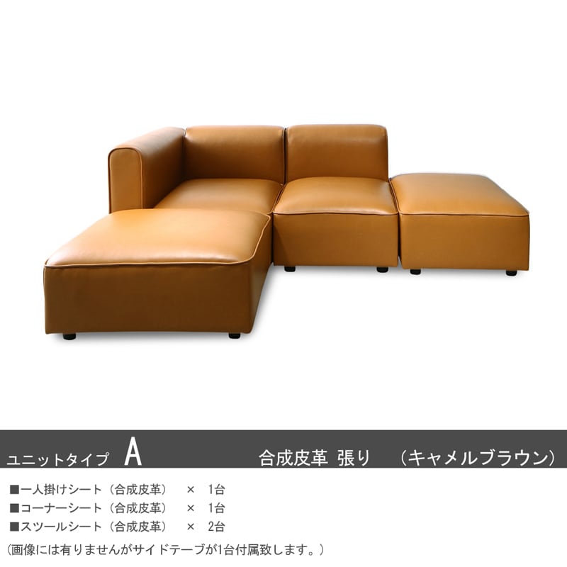 UN-DユニットタイプAセット コーナーソファ カラー| 2色対応 主素材| ポリエステル 合成皮革 ウレタンフォーム お部屋のスタイルに合わせて変化可能 レイアウト自由自在 サイドテーブ付き ※1年保証付き モダン 北欧 sofa 4人掛け 3人掛け